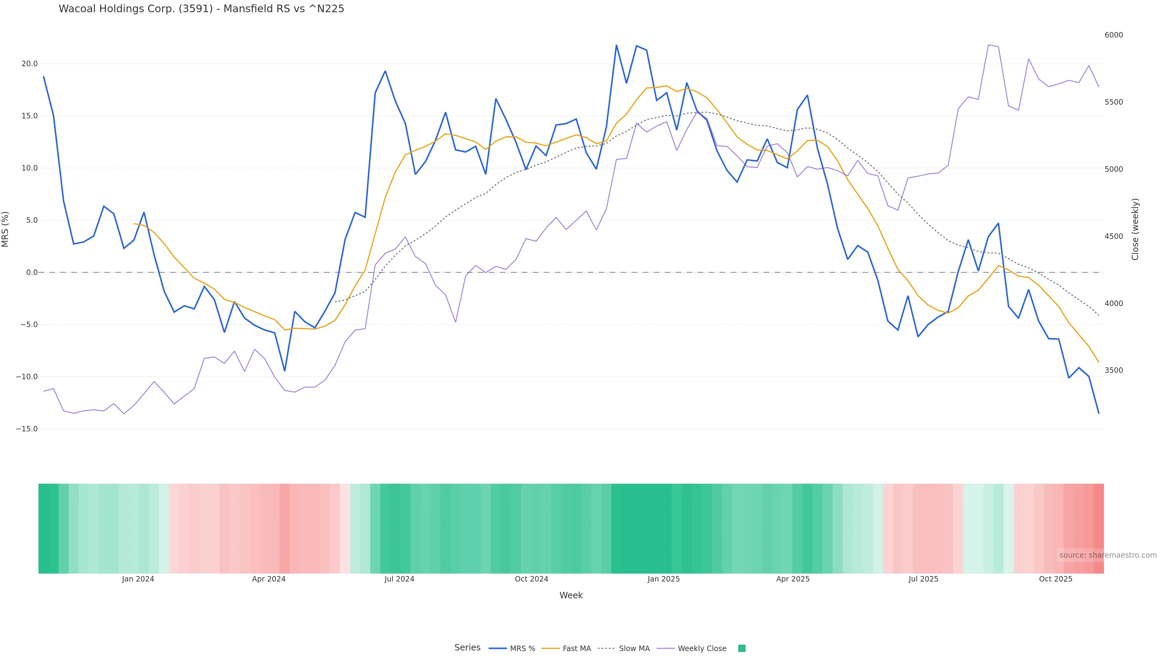 This week: relative strength is fading. In practical terms: backdrop leans corrective; rallies face a higher bar for sustainability; bearish divergence lowers the quality of upside attempts.