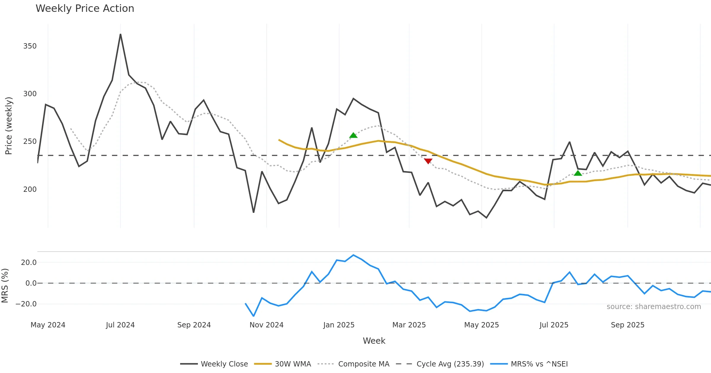 Mansfield RS vs ^NSEI is negative and weakening.