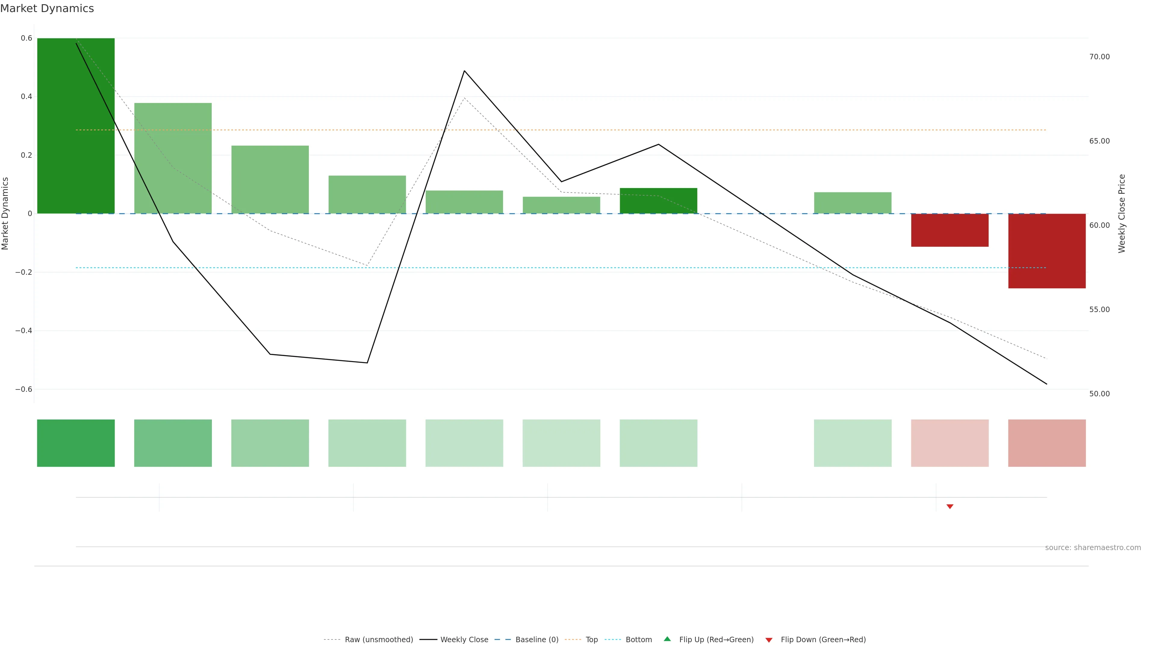 Recent ribbon flip to red. — First bars of a new state can build trend.