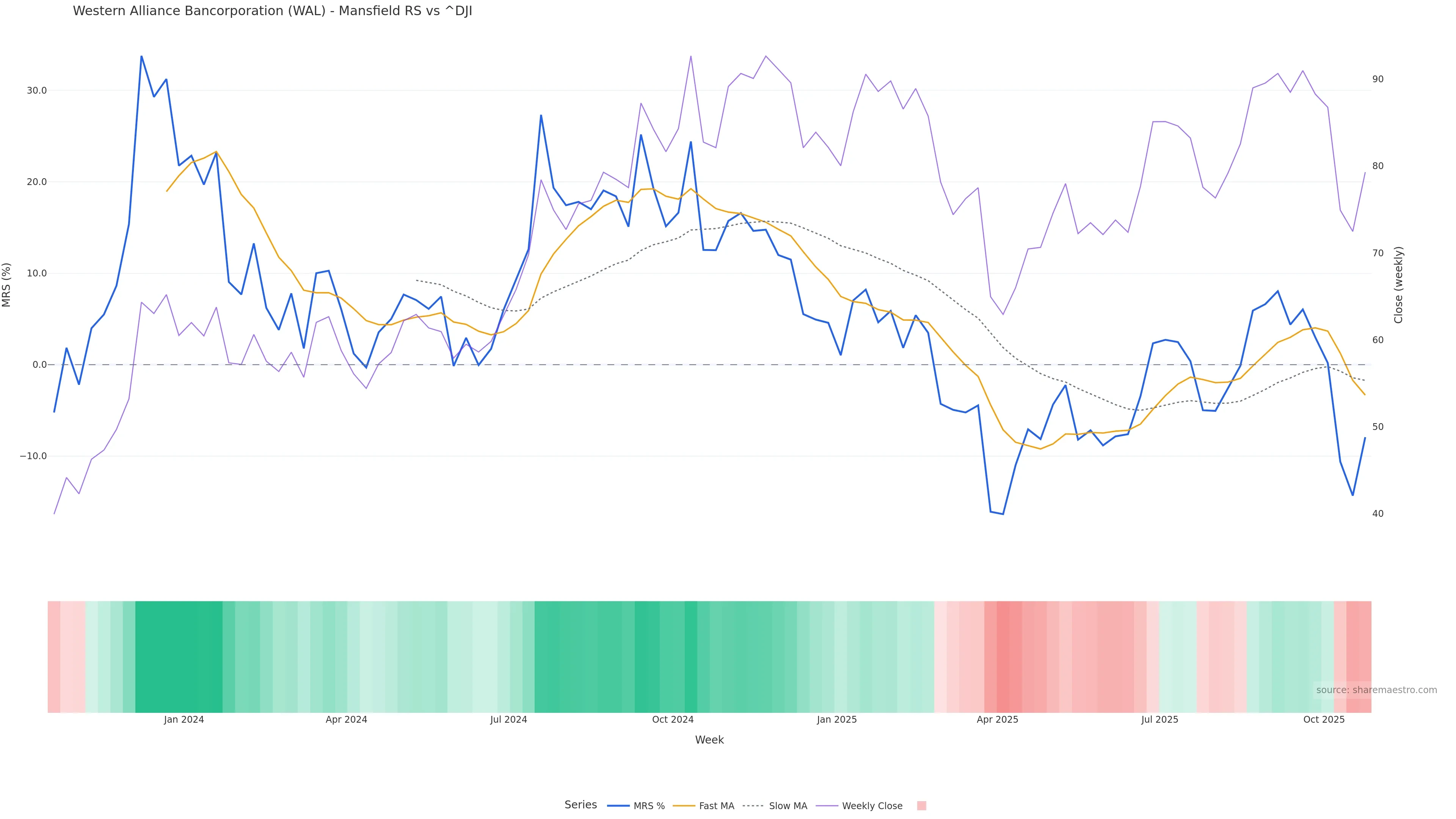 This week: relative strength is fading. In practical terms: backdrop leans corrective; rallies face a higher bar for sustainability; bearish divergence lowers the quality of upside attempts.