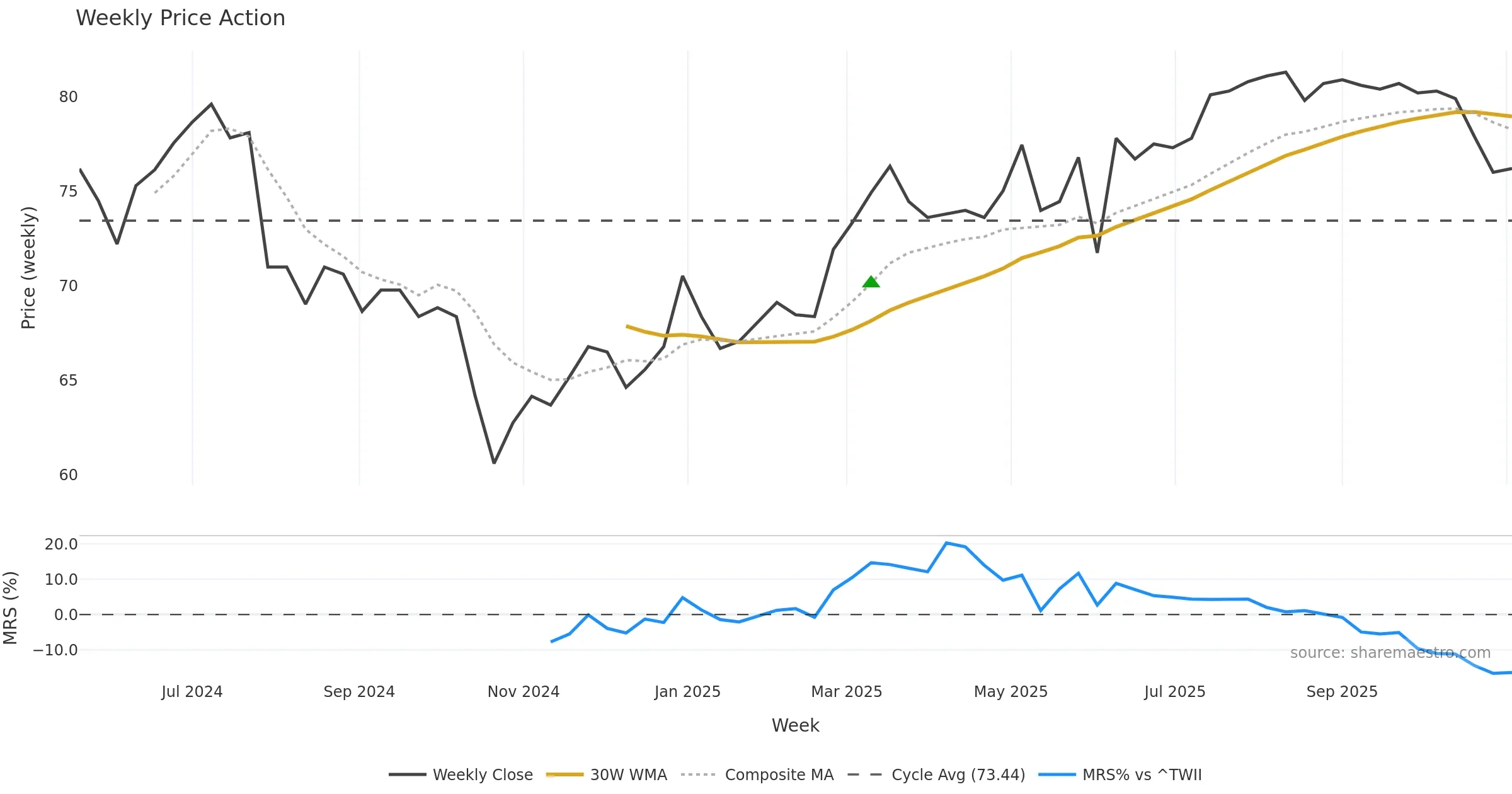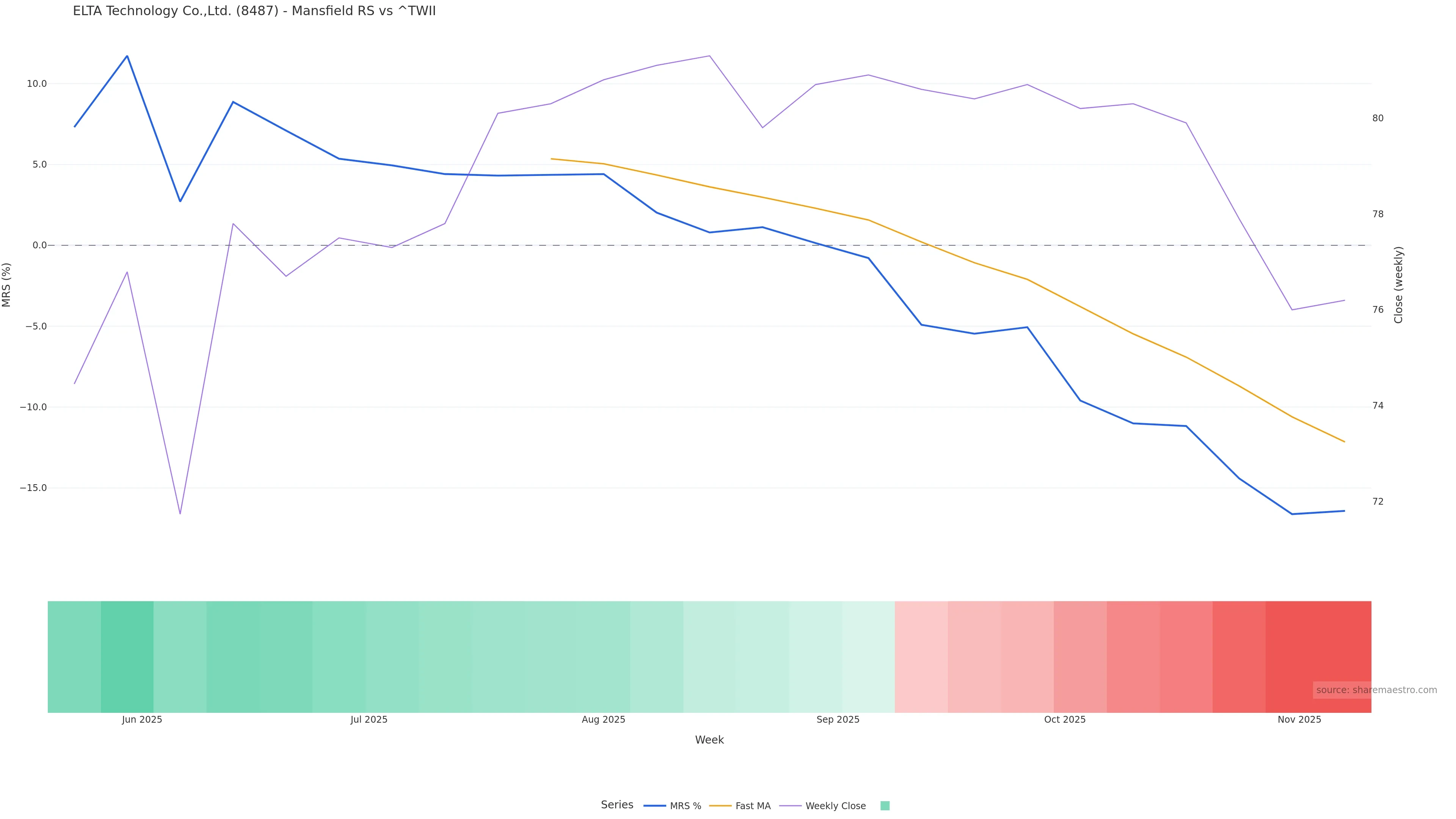 Mansfield RS vs ^TWII is negative and weakening. Avoid unless a reversal forms. In essence this reflects Mansfield relative strength trend with a bearish tilt.