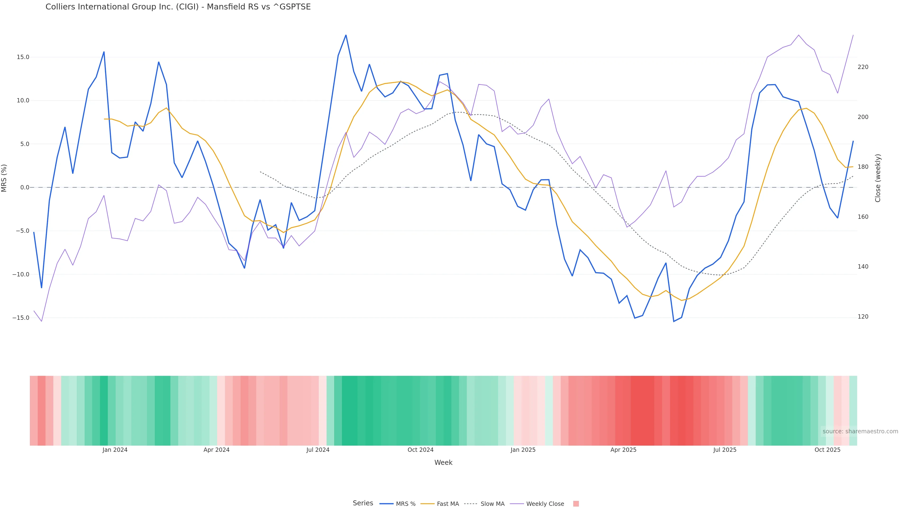 This week: relative strength is fading. In practical terms: backdrop leans corrective; rallies face a higher bar for sustainability; bearish divergence lowers the quality of upside attempts.