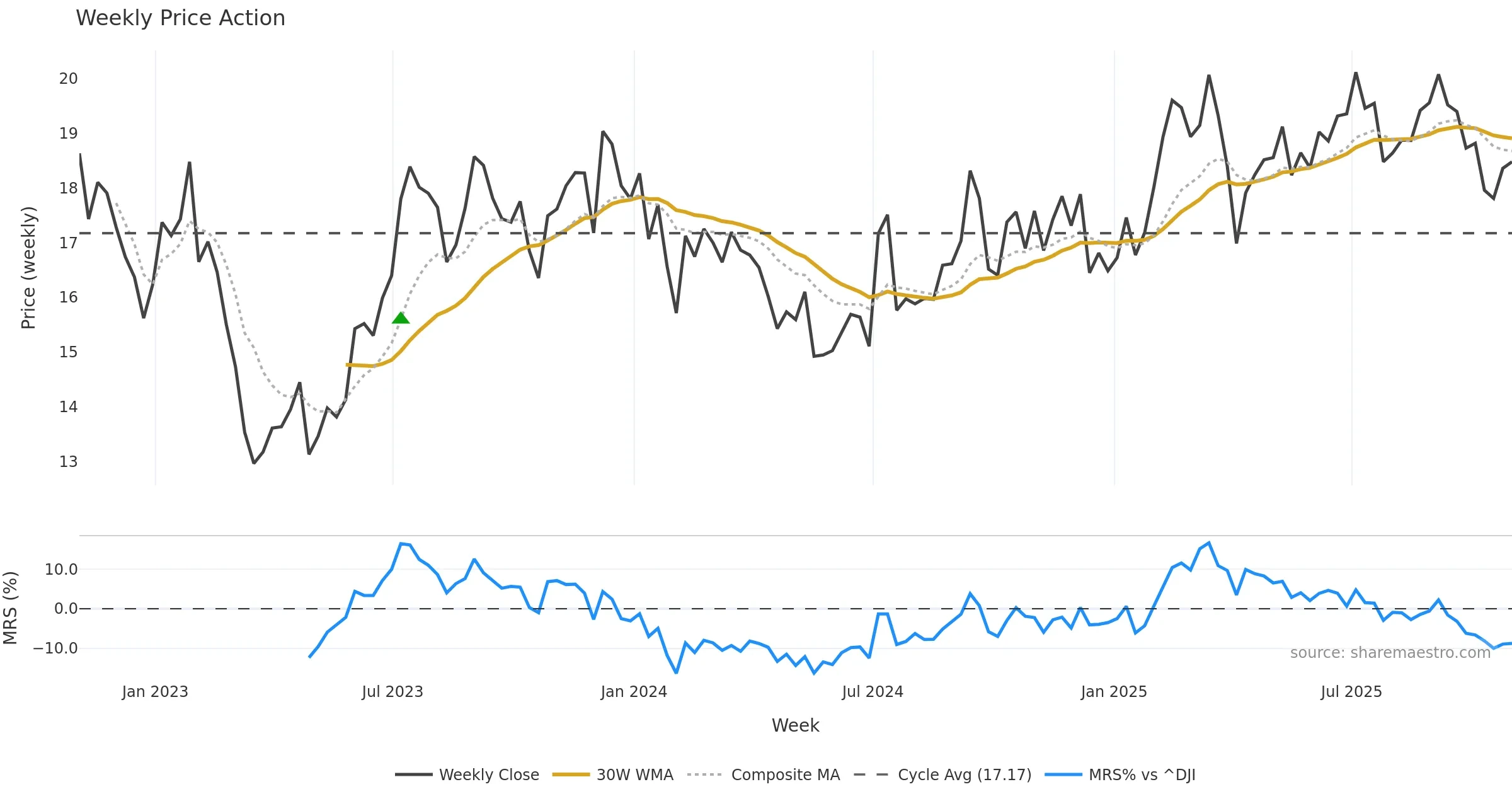 Mansfield RS vs ^DJI is negative and weakening. — Avoid unless a reversal forms.