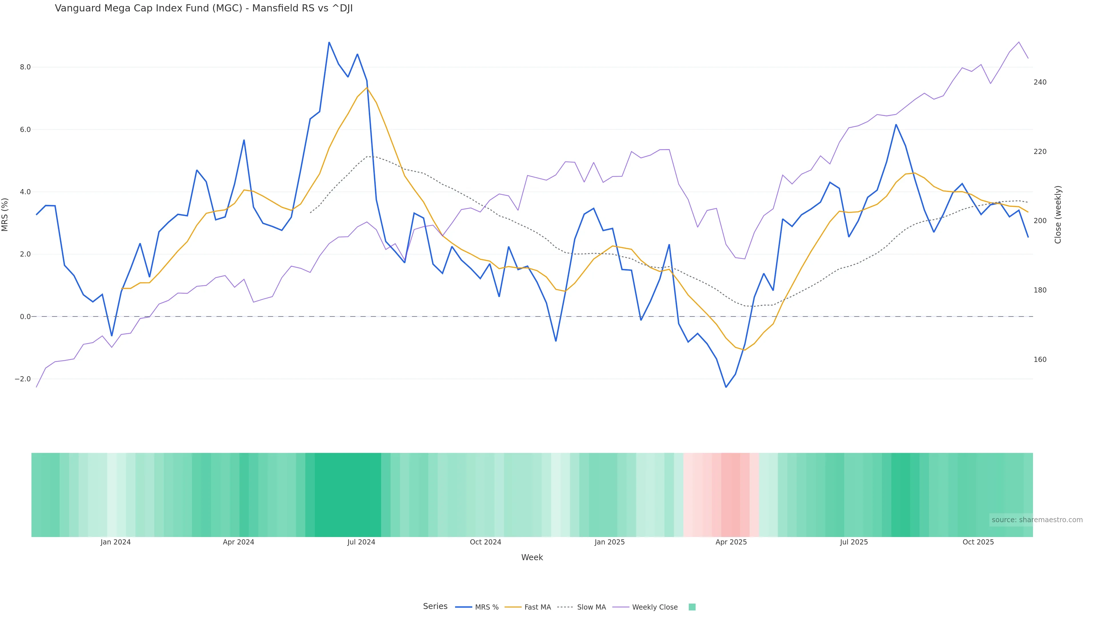 This week: relative strength is fading. In practical terms: backdrop is balanced; confirmation from breadth and closes is important; alignment between price and intent improves reliability of advances.