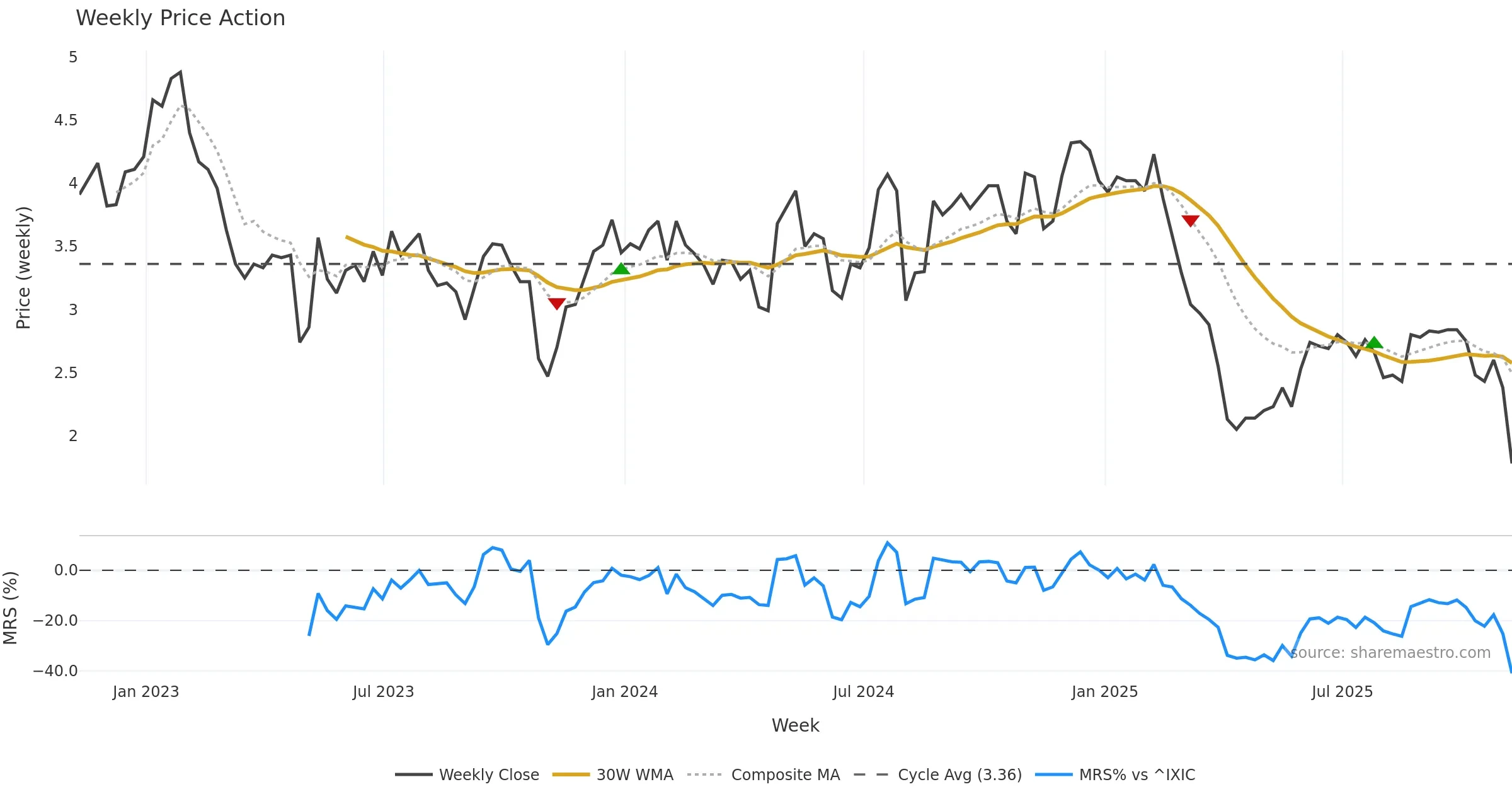 Mansfield RS vs ^IXIC is negative and weakening. — Avoid unless a reversal forms.