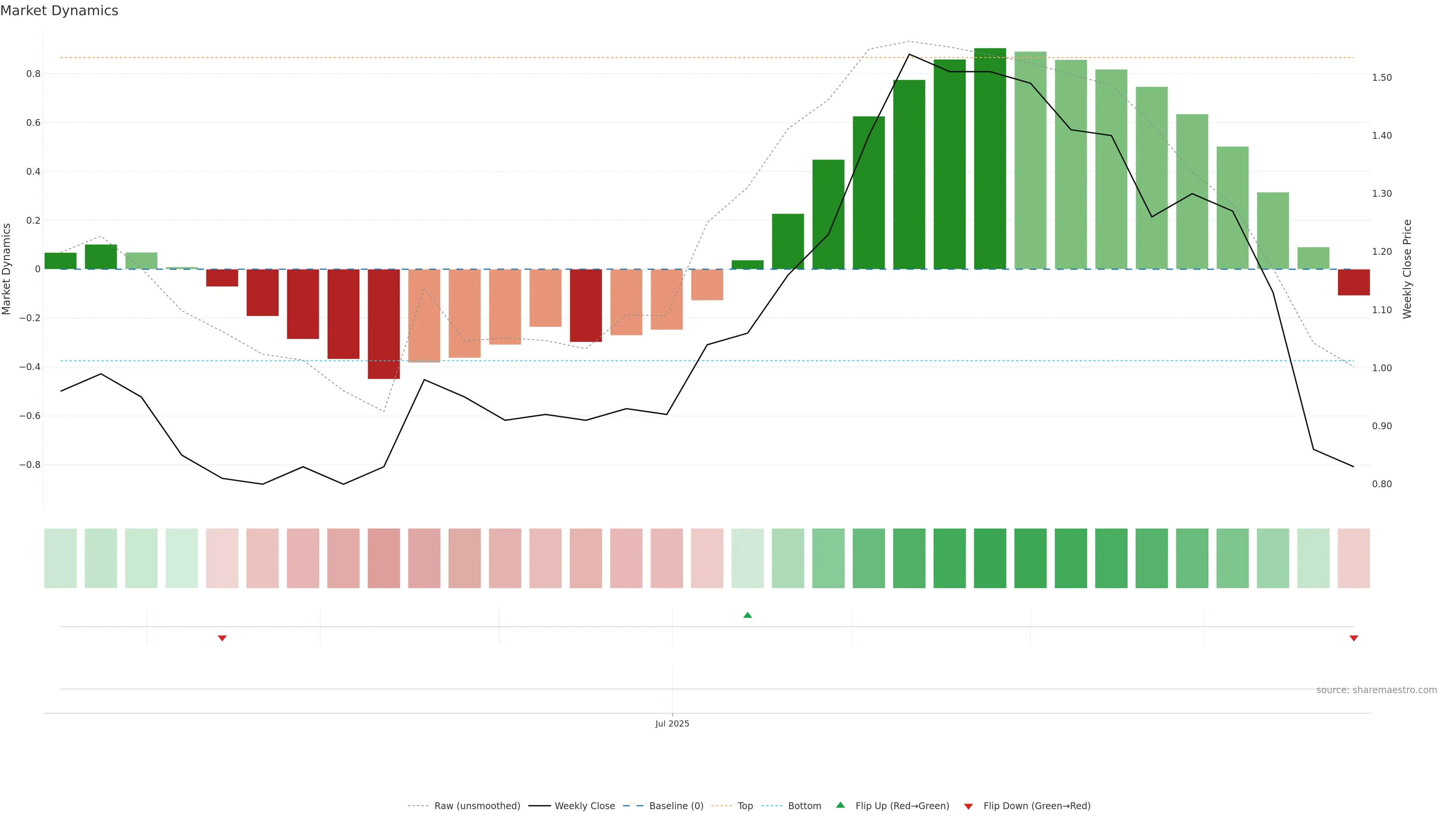 Recent ribbon flip to red. — First bars of a new state can build trend.