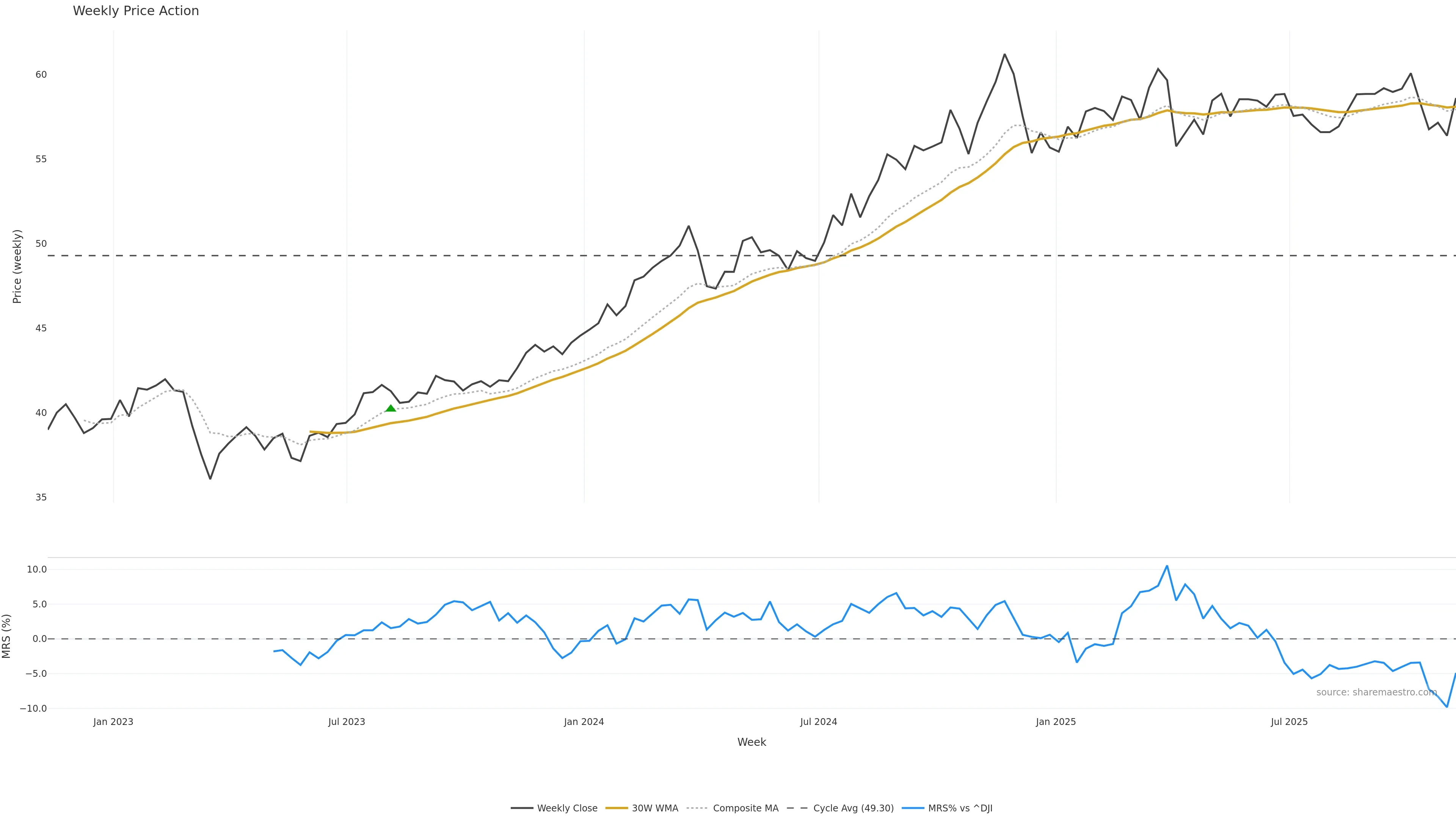 Mansfield RS vs ^DJI is negative and weakening. — Avoid unless a reversal forms.