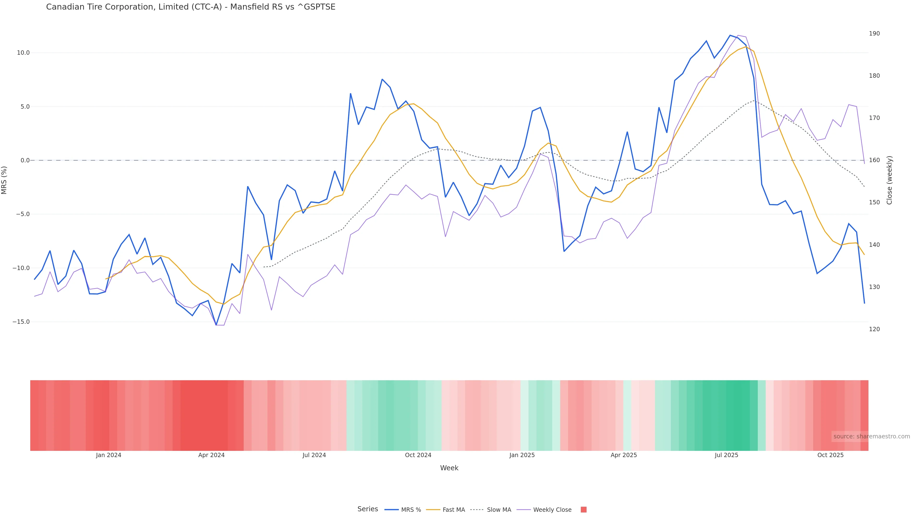 Mansfield RS vs ^GSPTSE is negative and weakening.