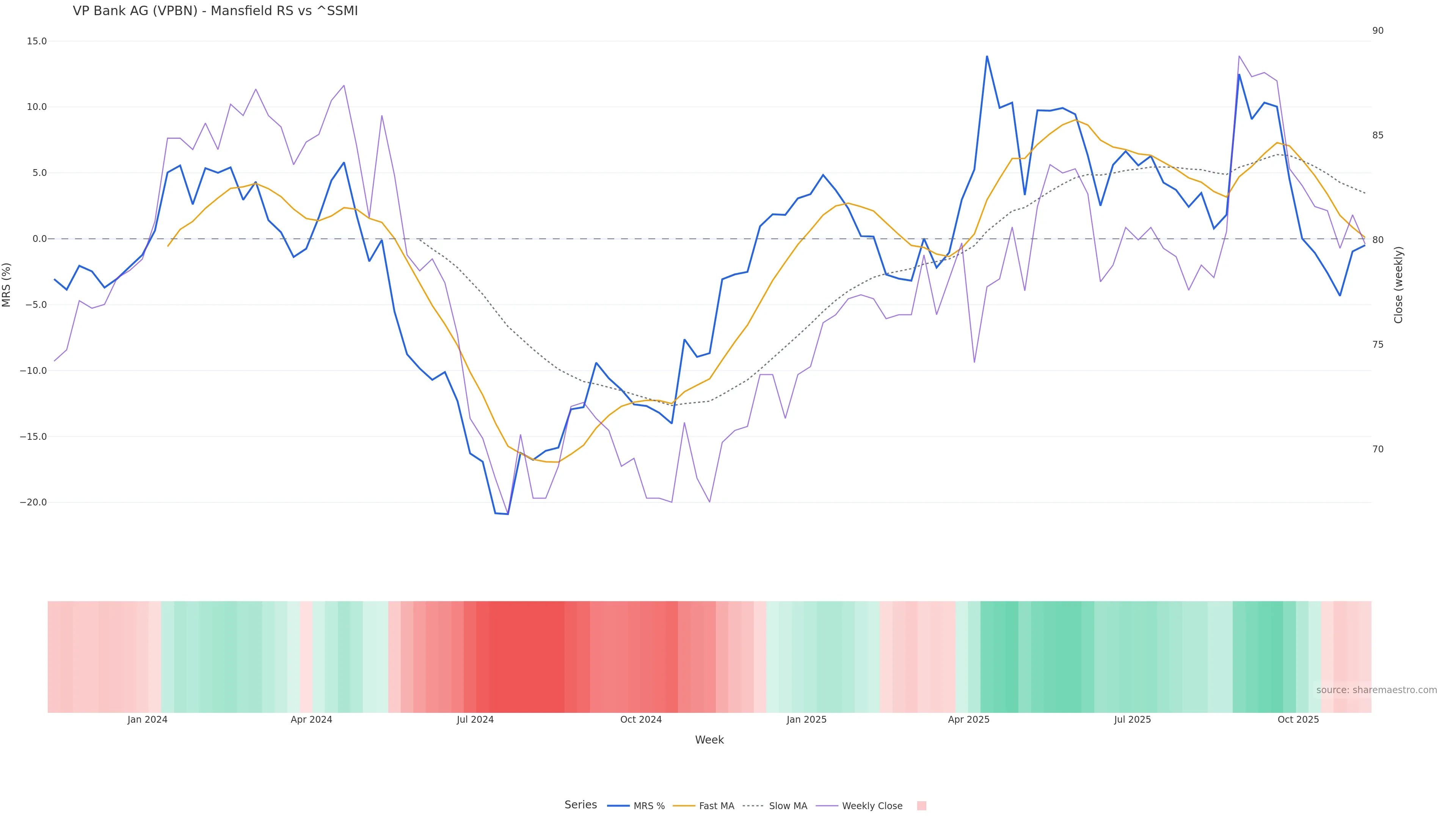 Mansfield RS vs ^SSMI is negative and weakening. Avoid unless a reversal forms. In essence this reflects Mansfield relative strength trend with a bearish tilt.