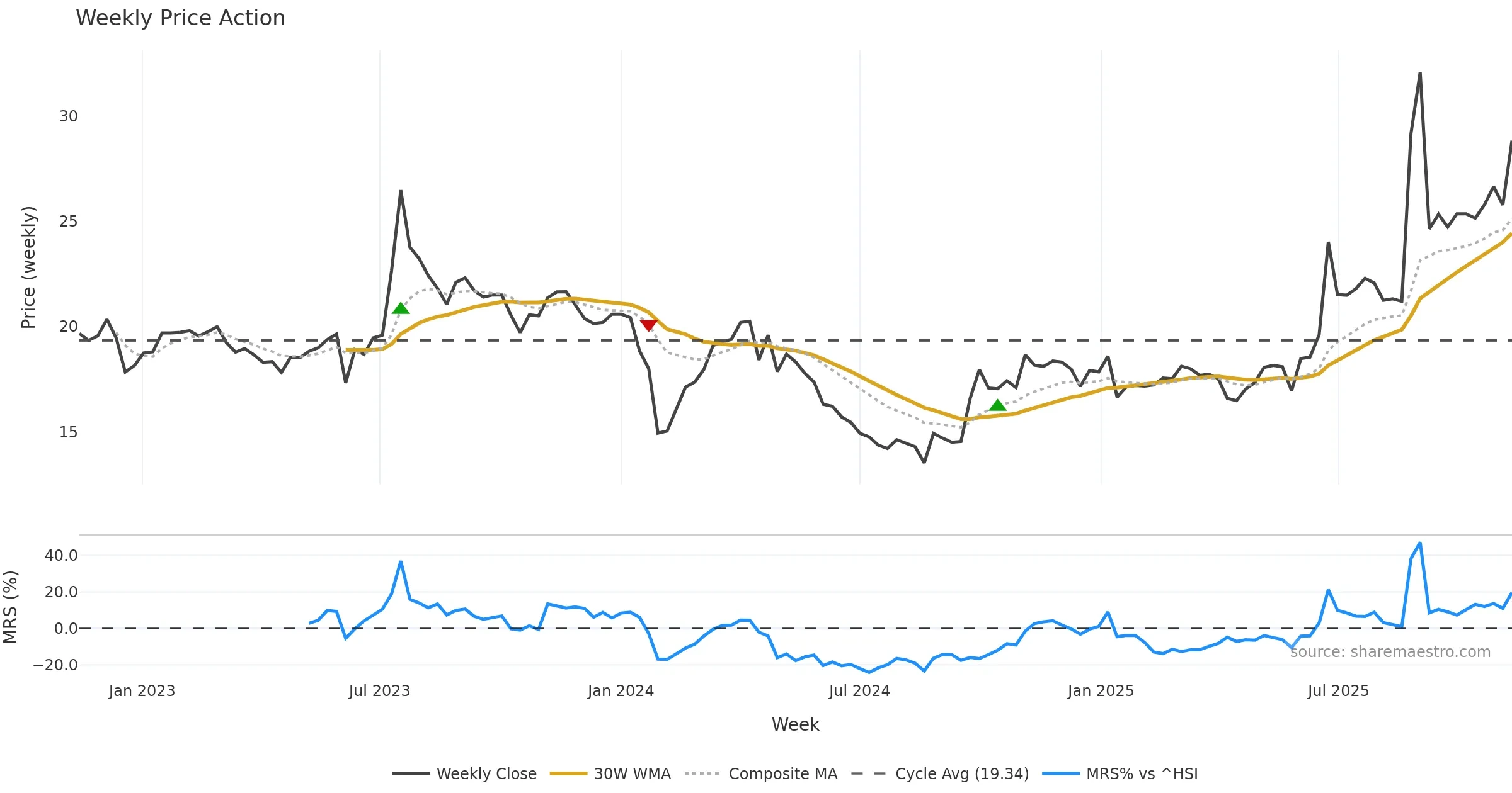 Mansfield RS vs ^HSI is positive and rising. — Outperformance tailwind for swing entries.