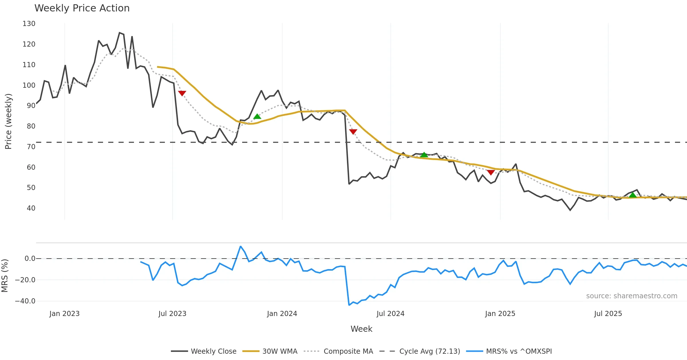 Mansfield RS vs ^OMXSPI is negative and weakening. — Avoid unless a reversal forms.