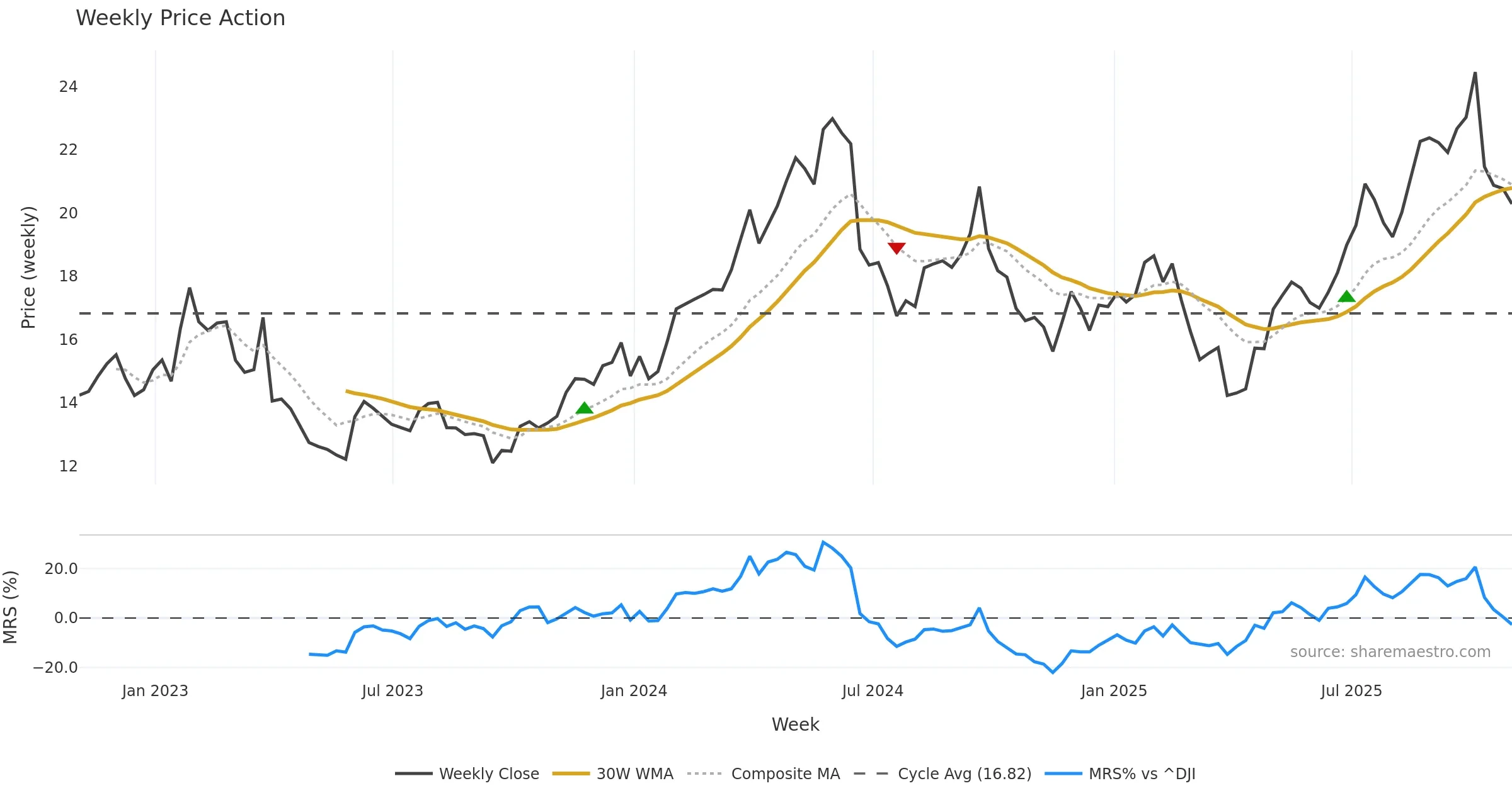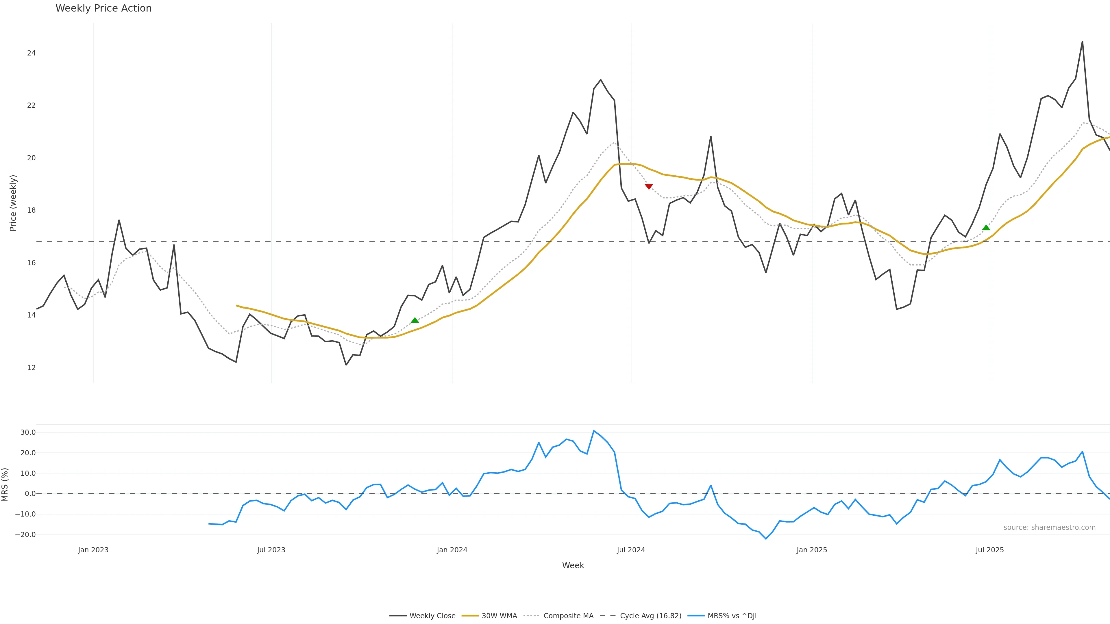 Mansfield RS vs ^DJI is negative and weakening. — Avoid unless a reversal forms.