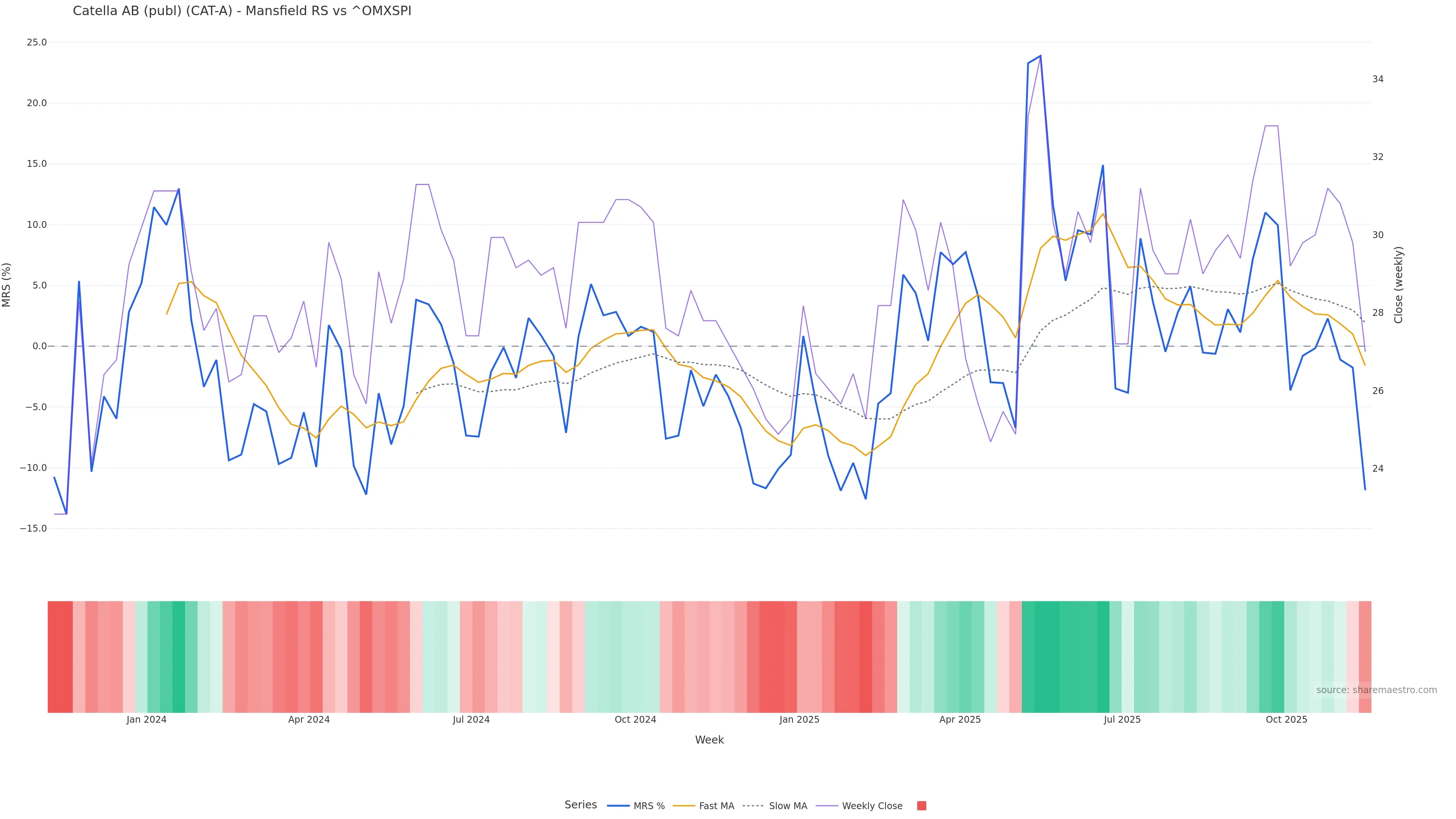 This week: relative strength is fading. In practical terms: backdrop leans corrective; rallies face a higher bar for sustainability; bearish divergence lowers the quality of upside attempts.