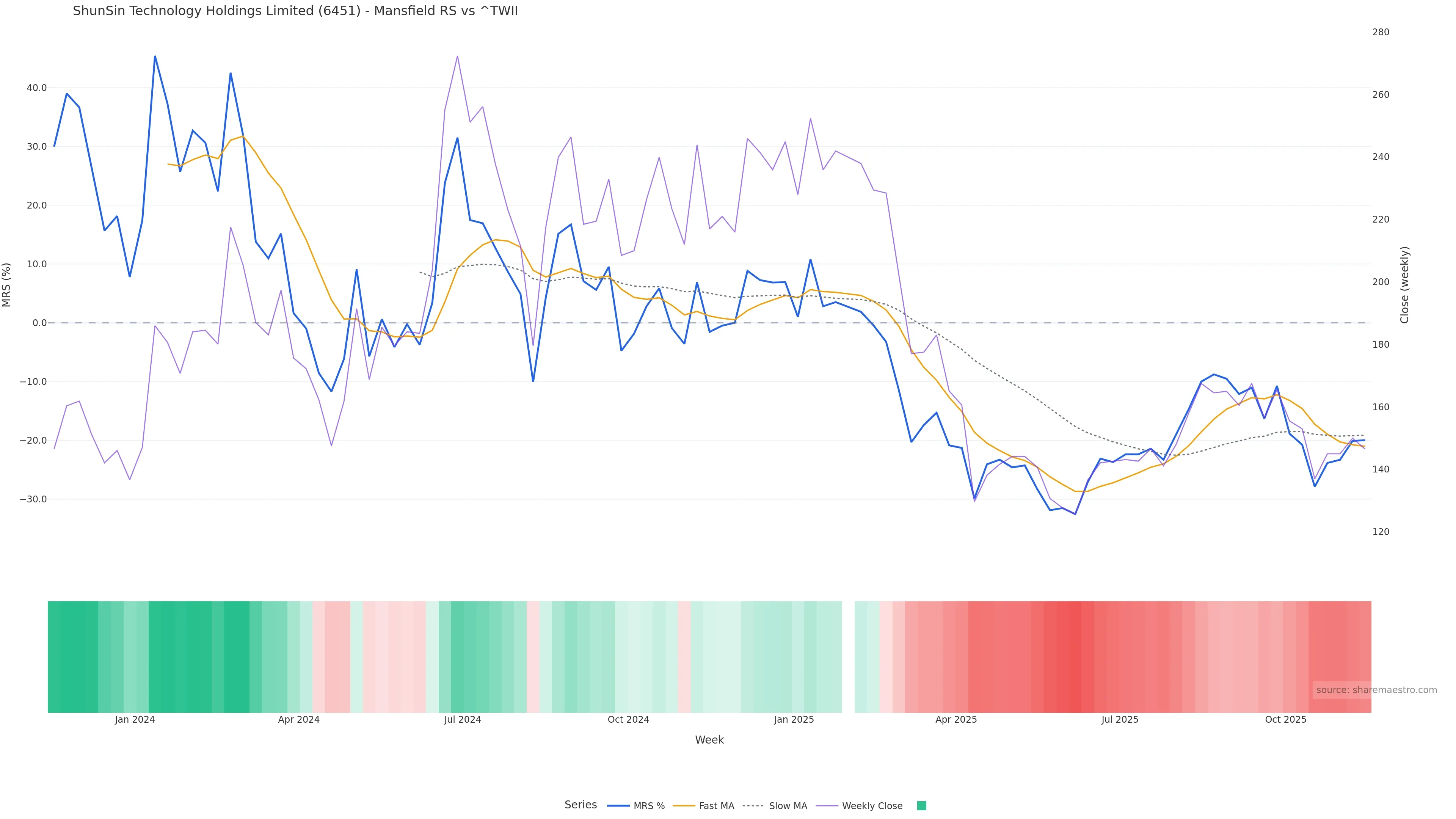 Mansfield RS vs ^TWII is negative and weakening. Avoid unless a reversal forms. In essence this reflects Mansfield relative strength trend with a bearish tilt.
