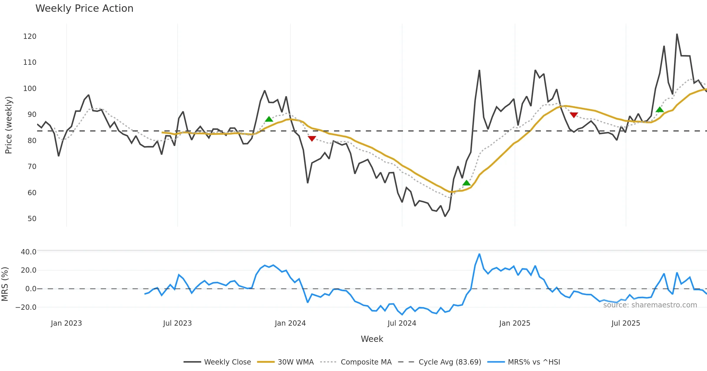 Mansfield RS vs ^HSI is negative and weakening. — Avoid unless a reversal forms.