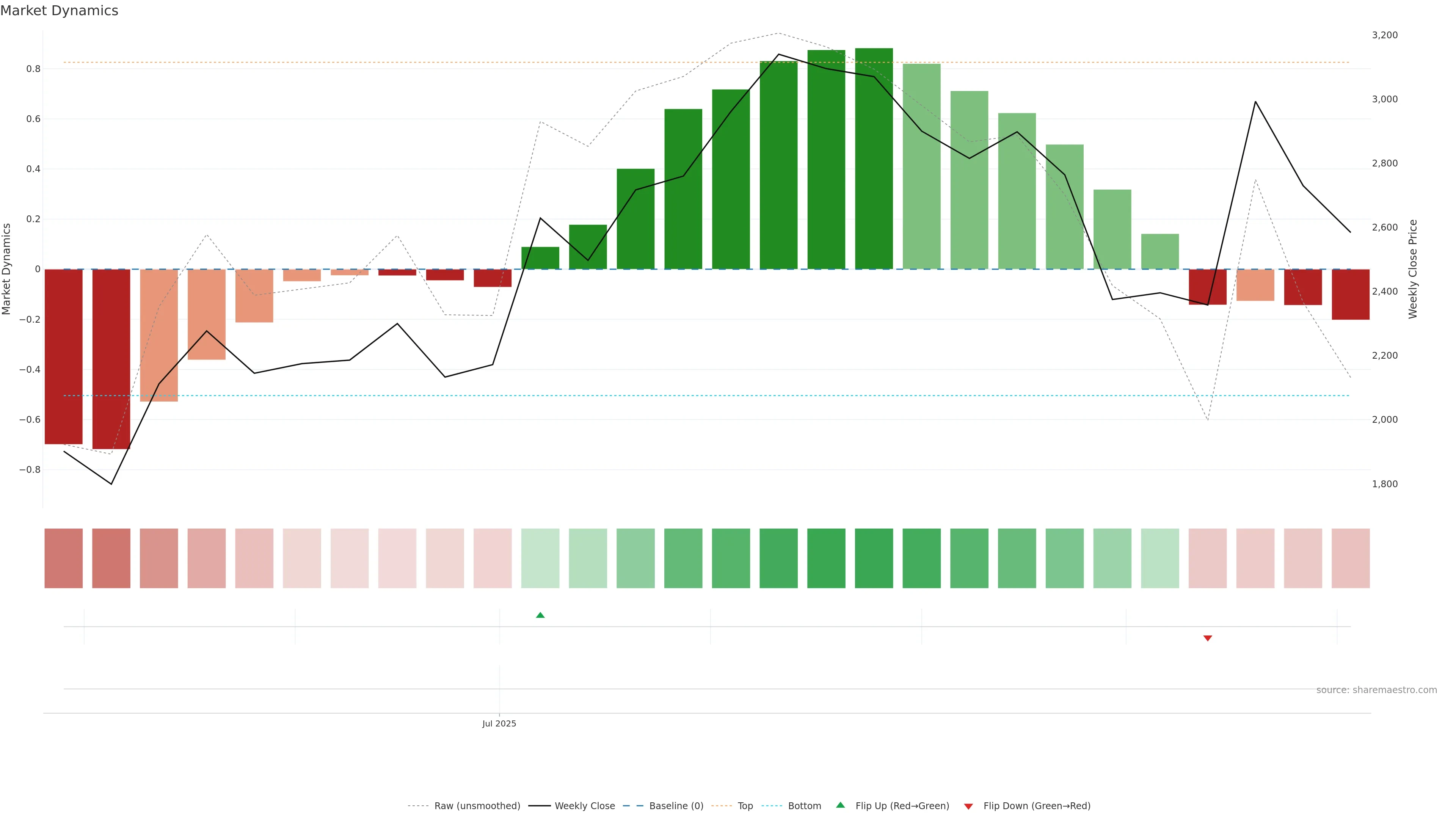 Recent ribbon flip to red. — First bars of a new state can build trend.