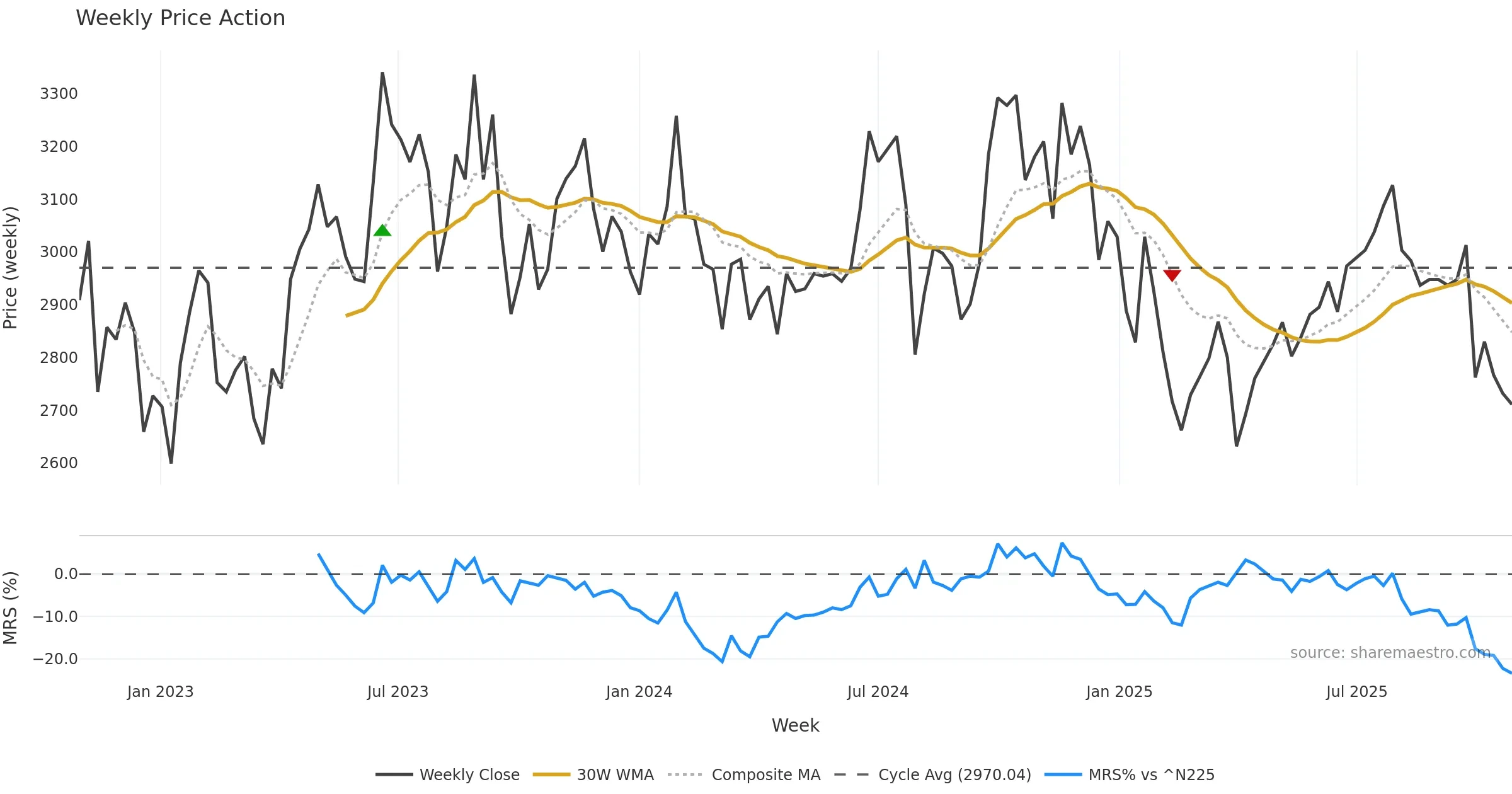 Mansfield RS vs ^N225 is negative and weakening. — Avoid unless a reversal forms.