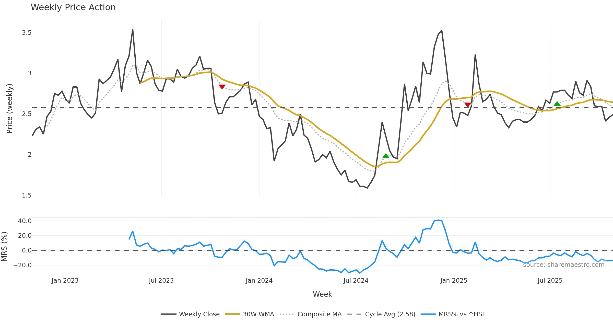 Mansfield RS vs ^HSI is negative and weakening. — Avoid unless a reversal forms.