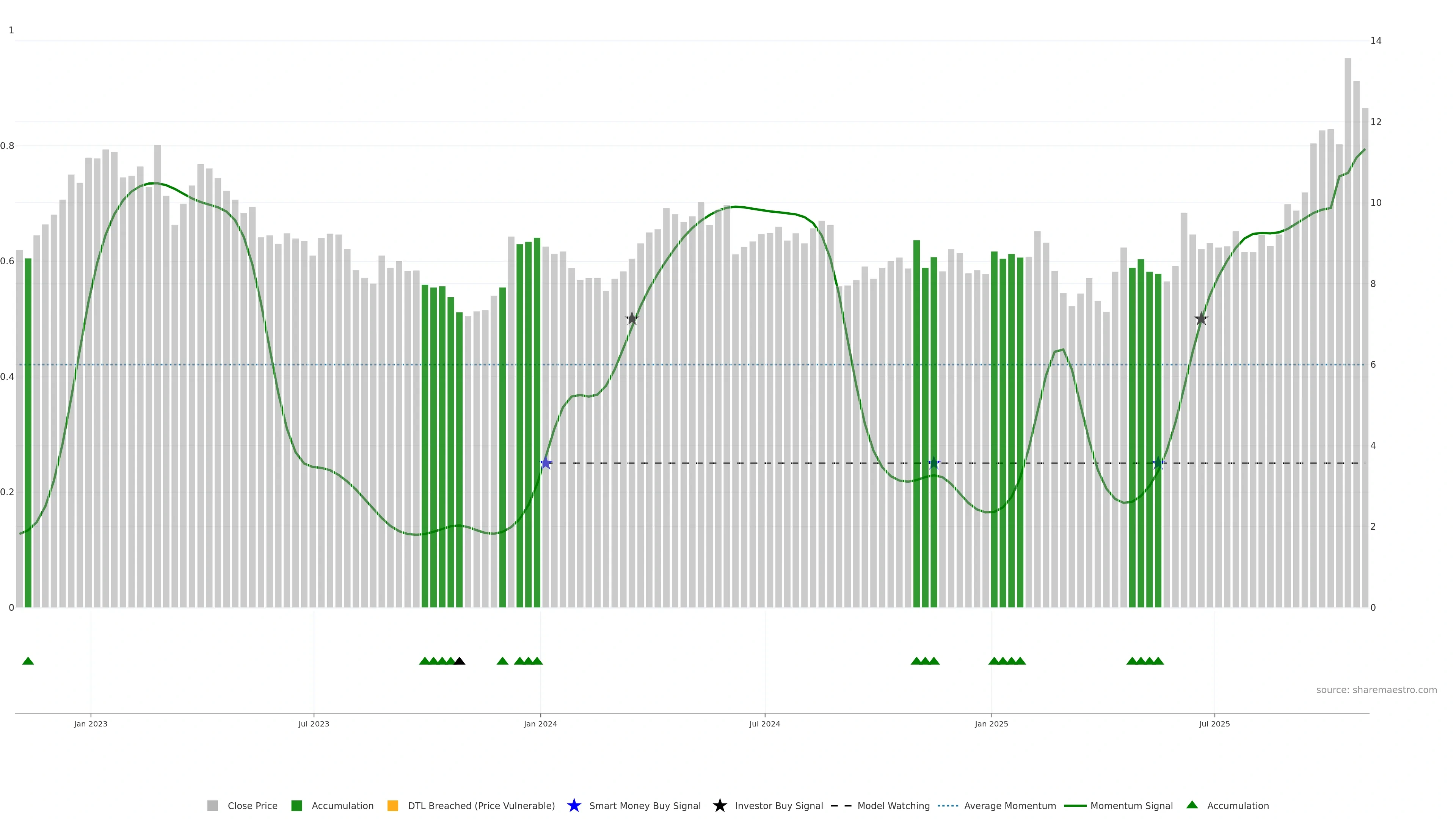 Proprietary Analysis: All Sharemaestro charts, signals, and insights are unique to our platform. We do not follow conventional market models - this proprietary approach is what sets Sharemaestro apart.