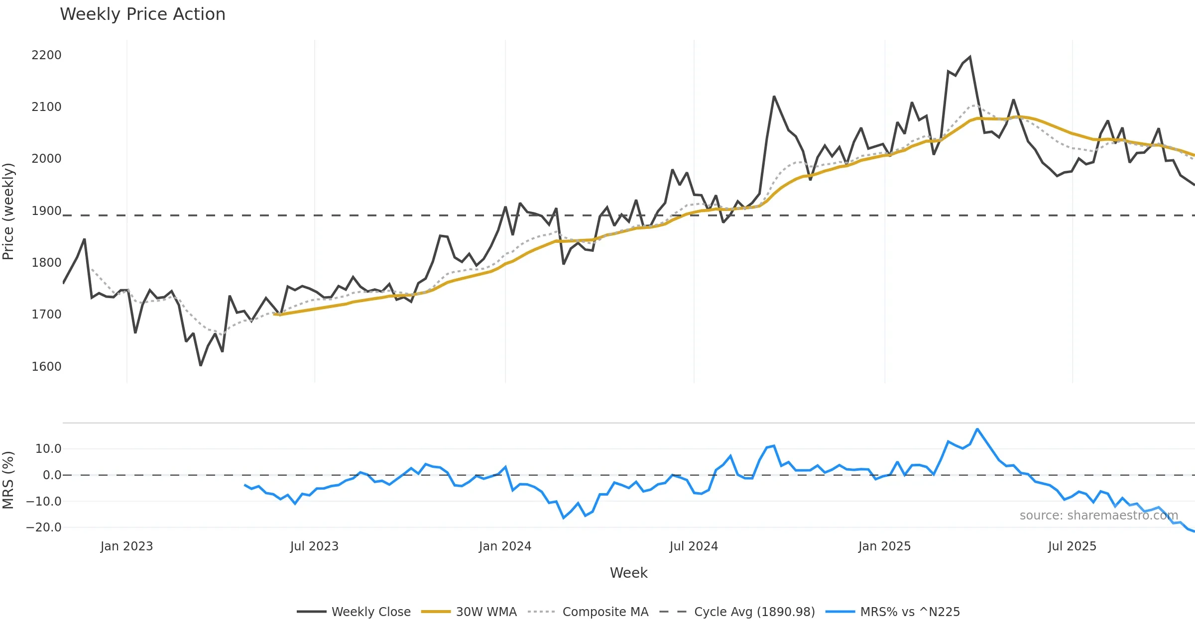 Mansfield RS vs ^N225 is negative and weakening. — Avoid unless a reversal forms.