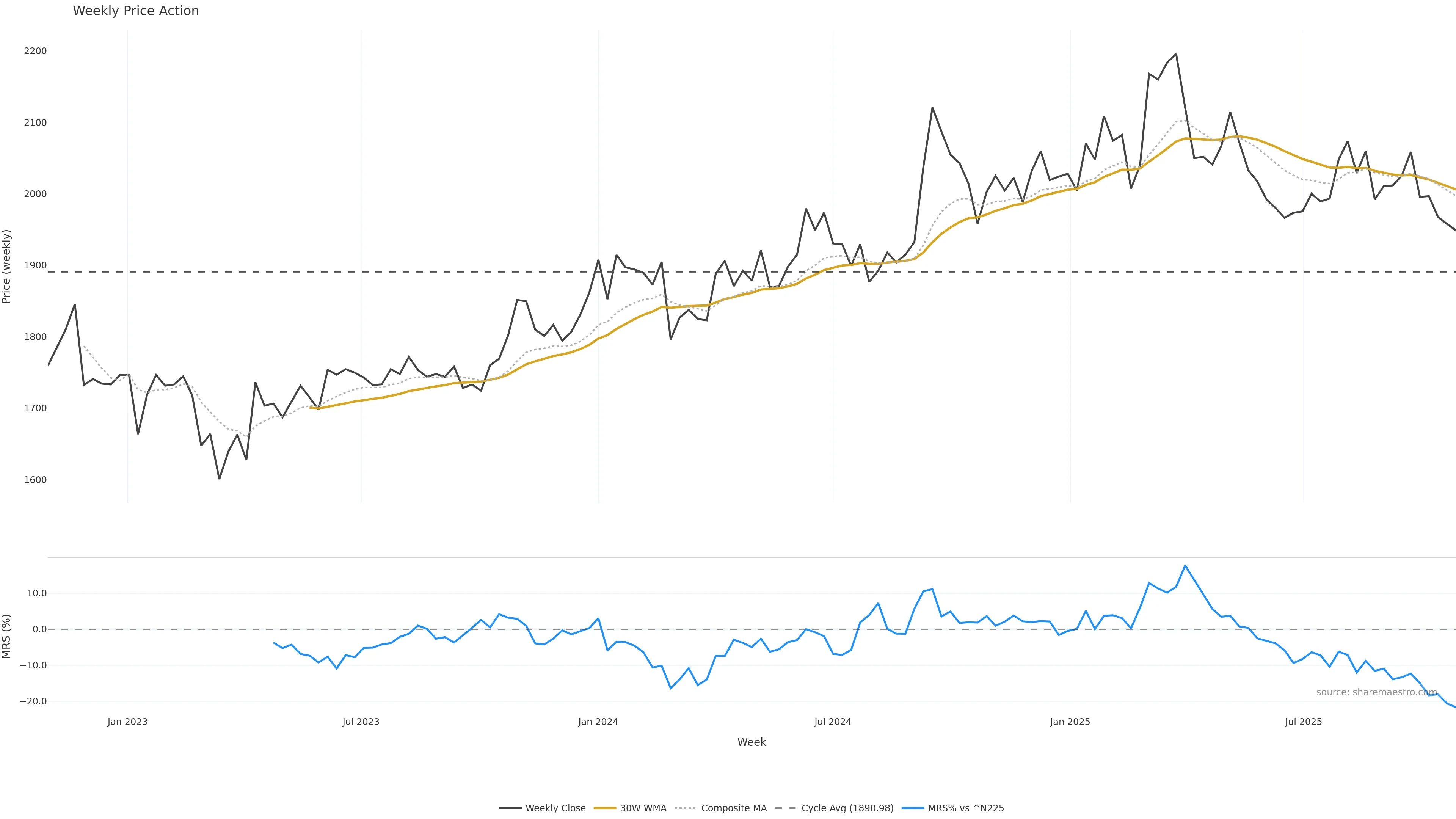 Mansfield RS vs ^N225 is negative and weakening.