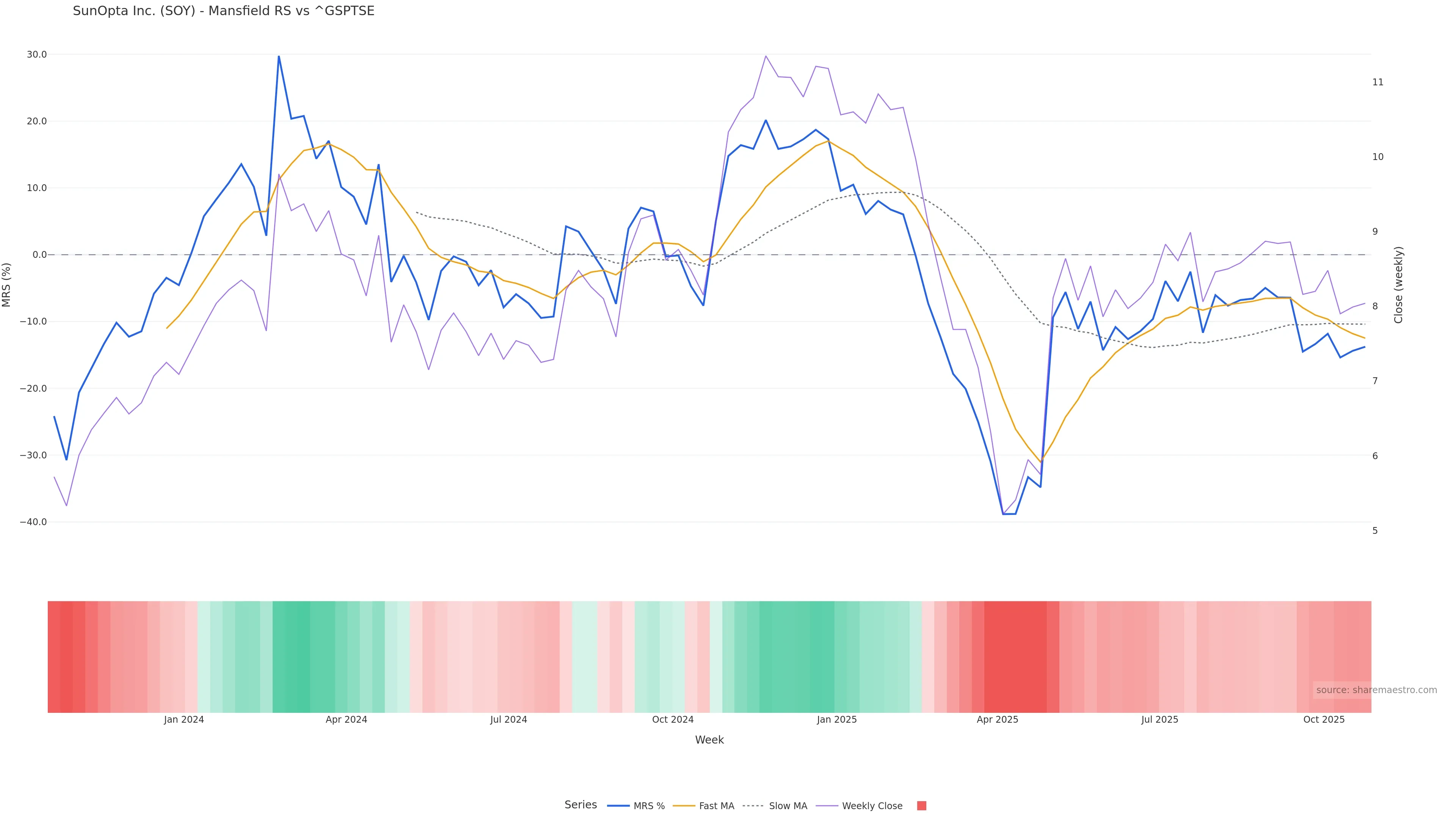 Mansfield RS vs ^GSPTSE is negative and weakening.