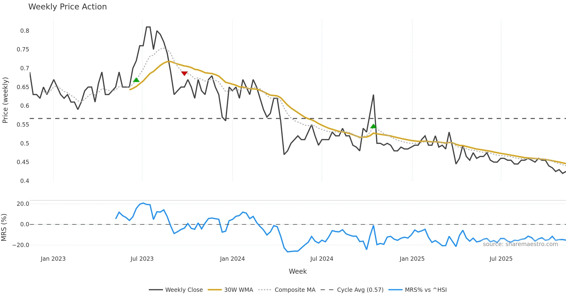 Mansfield RS vs ^HSI is negative and weakening. — Avoid unless a reversal forms.