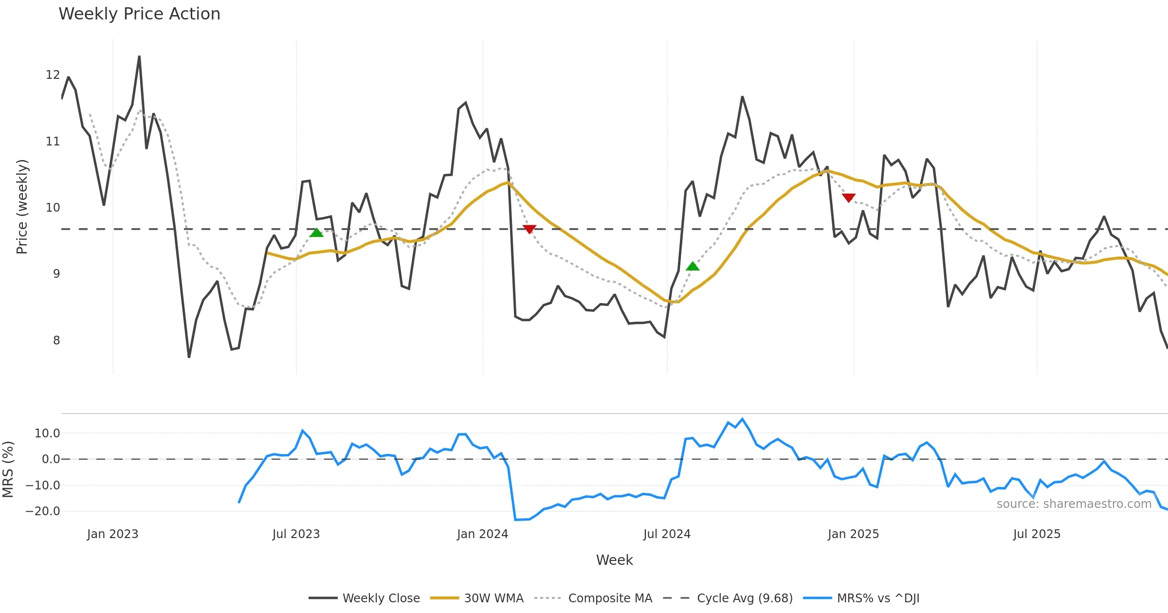 Mansfield RS vs ^DJI is negative and weakening. — Avoid unless a reversal forms.