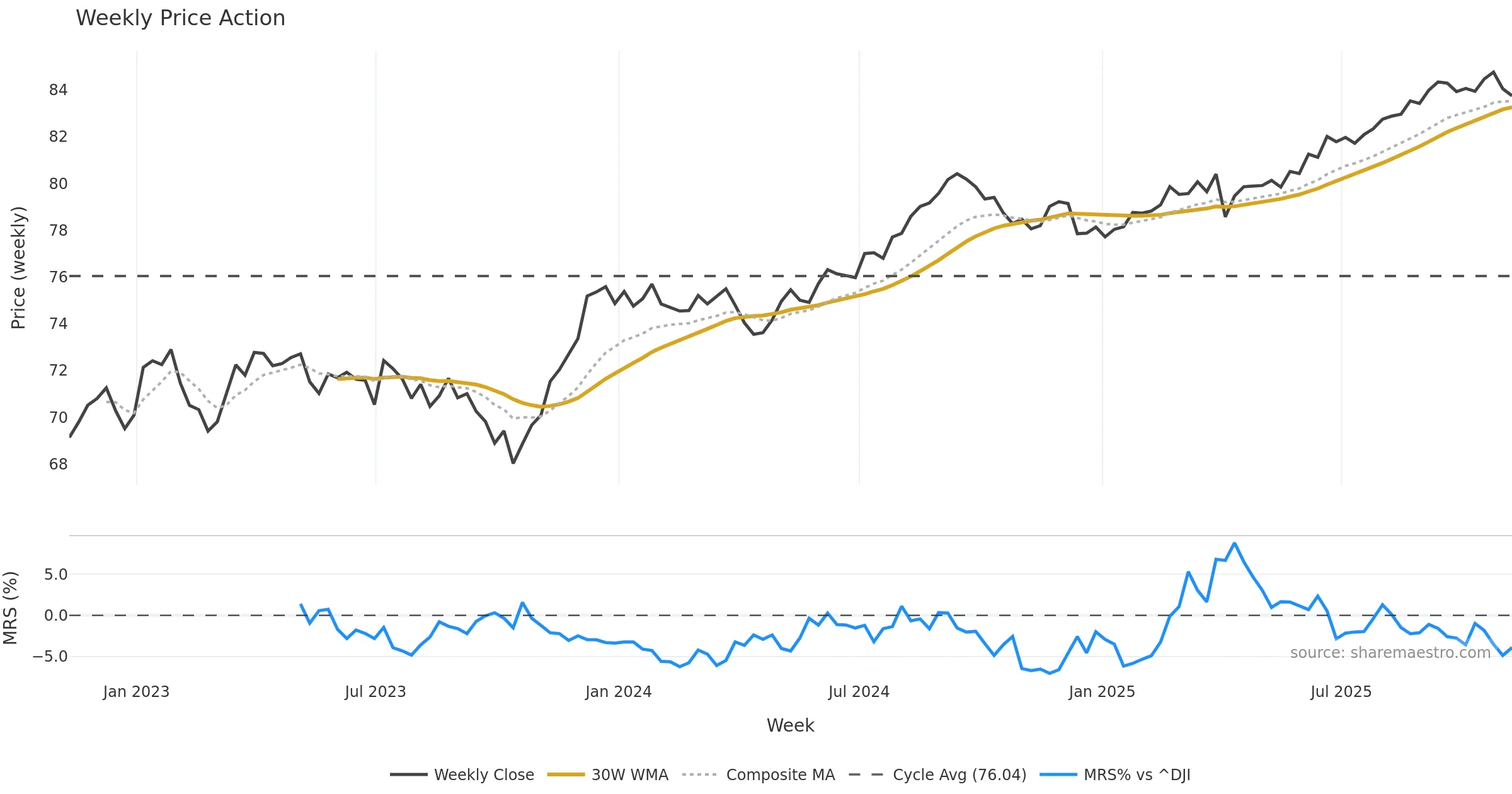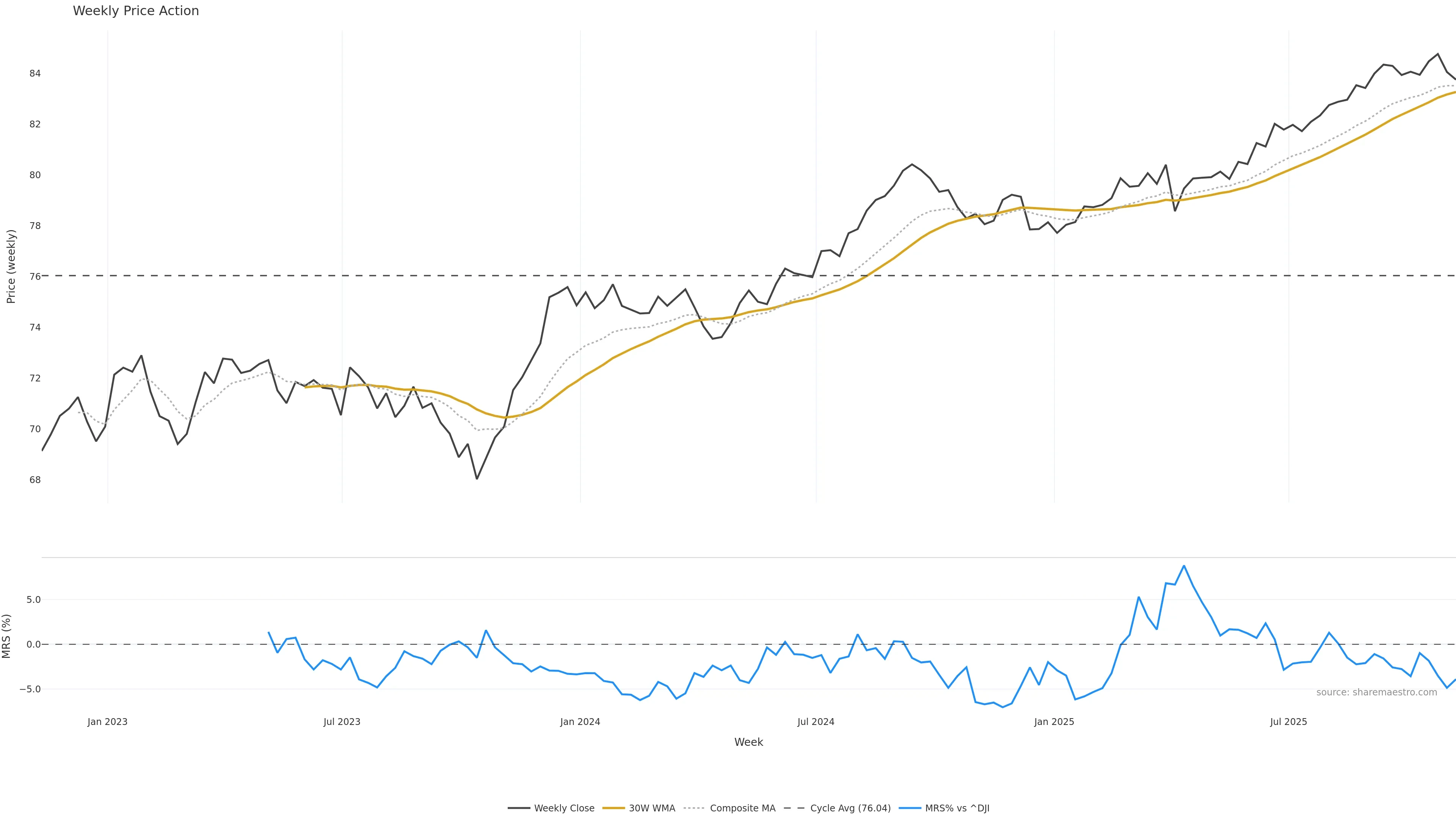 Mansfield RS vs ^DJI is negative and weakening. — Avoid unless a reversal forms.