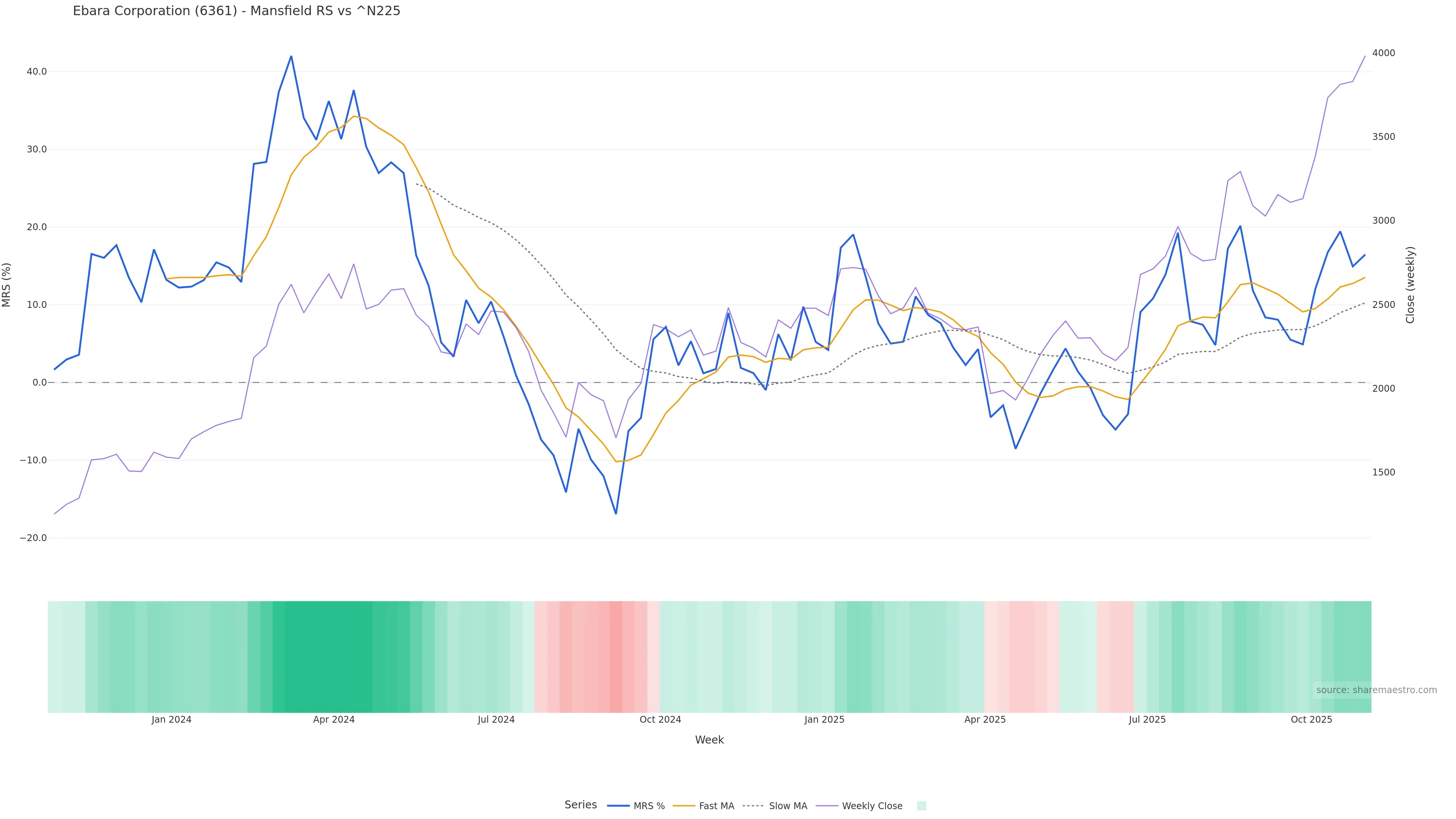 Mansfield RS vs ^N225 is positive and rising. — Outperformance tailwind for swing entries.