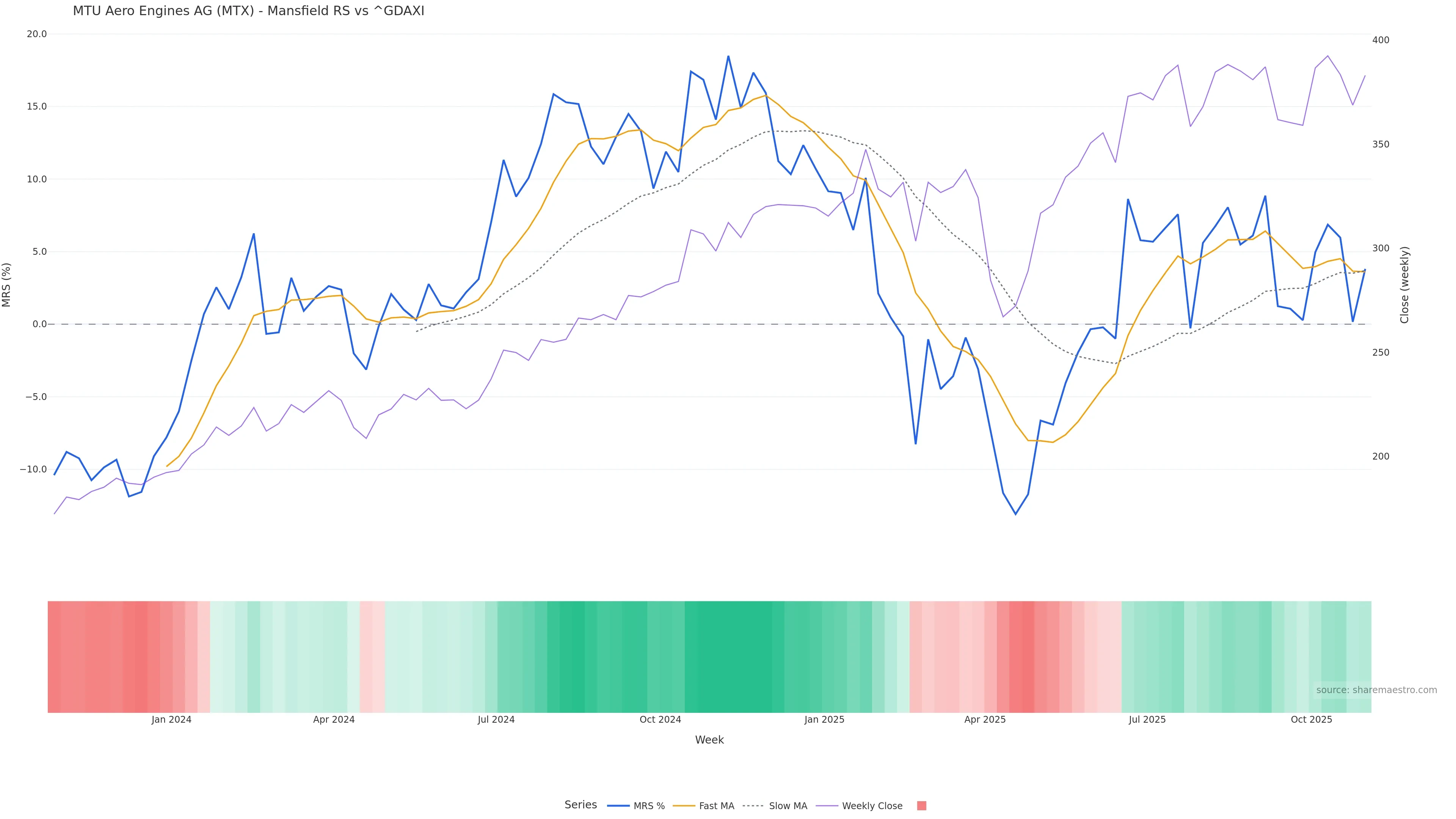 This week: relative strength is improving. In practical terms: backdrop leans constructive; pullbacks can be buyable if structure holds; bearish divergence lowers the quality of upside attempts.