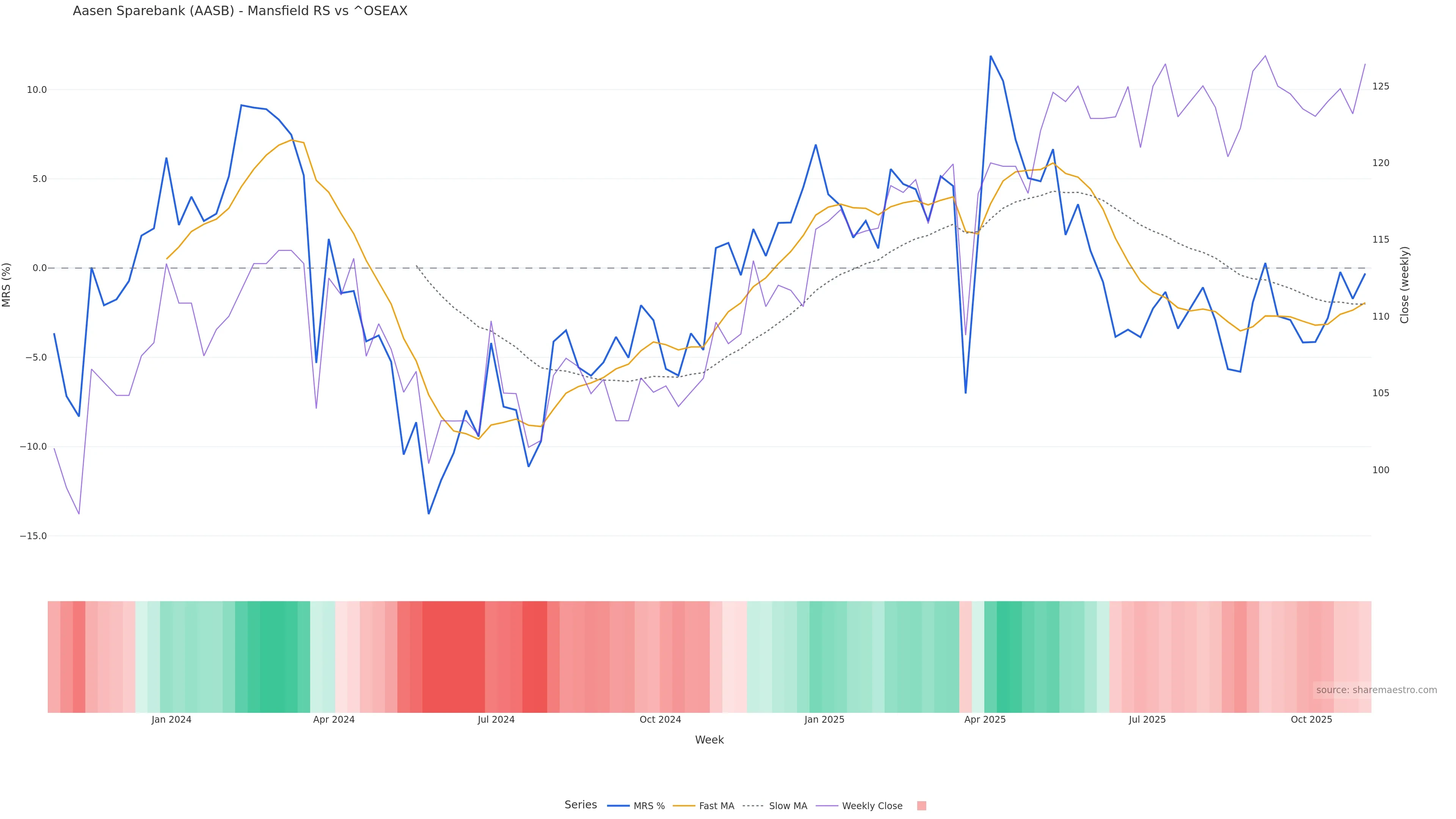 Last week closed up (1.95%), and over the last 8 weeks price is up (1.17%) with a rising slope (0.083%/w). Ranges are compressing (current 1.11× mean; 75th pct; realised vol ≈ 1.23%). Price spends time in the upper band (rising), participation is below typical with a selling-tilt bias (z -5.38), money flow is falling, and posture is above 30w & 50w (drawdown 0.00%). Balance is mixed; watch participation shifts and behaviour at the 30-week average.