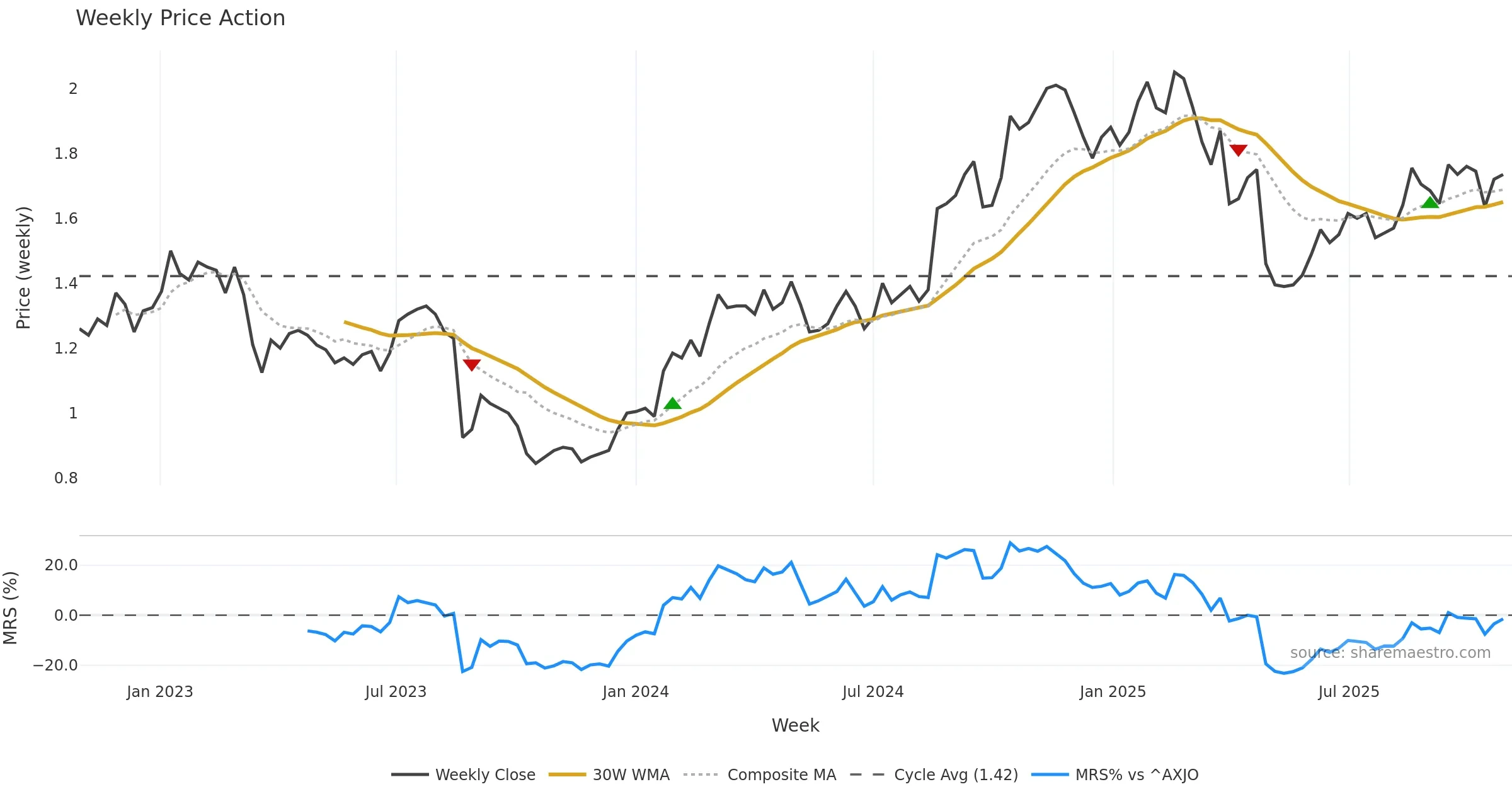 Mansfield RS vs ^AXJO is negative and weakening. — Avoid unless a reversal forms.