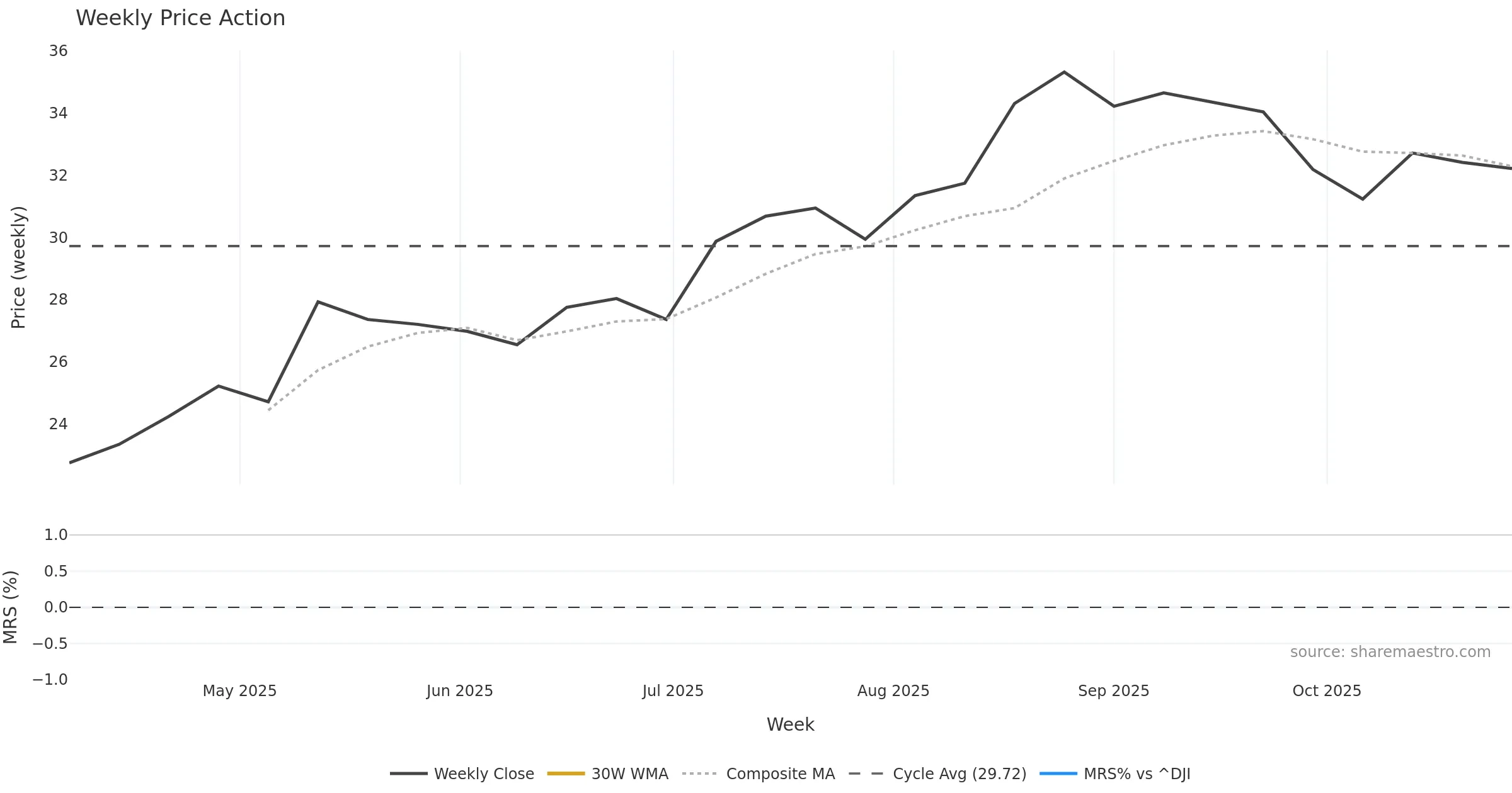 MRP weekly Price Action chart, closing 2025-10-27