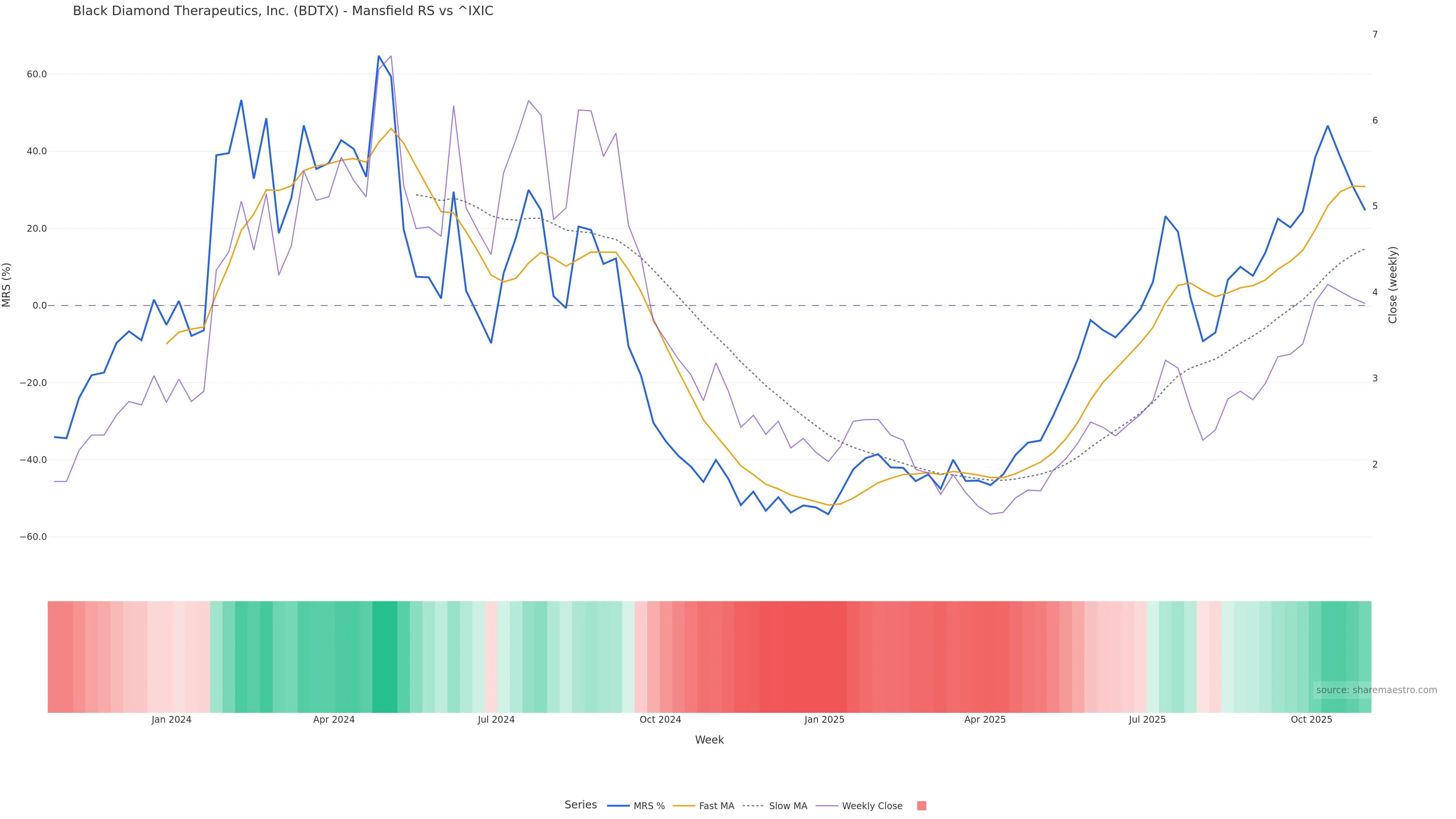 This week: relative strength is improving. In practical terms: backdrop leans constructive; pullbacks can be buyable if structure holds; bearish divergence lowers the quality of upside attempts.