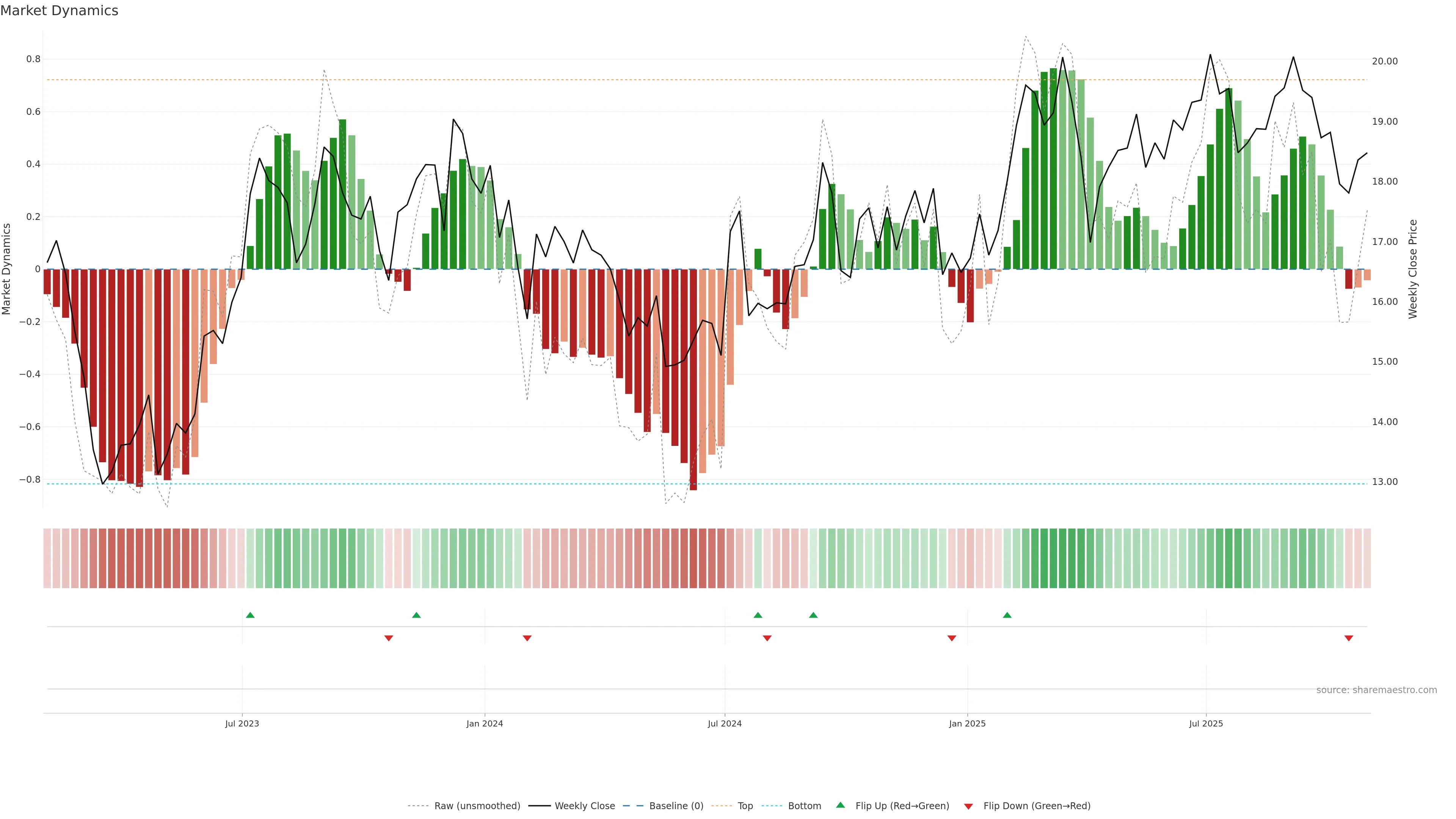 Recent ribbon flip to red. — First bars of a new state can build trend.