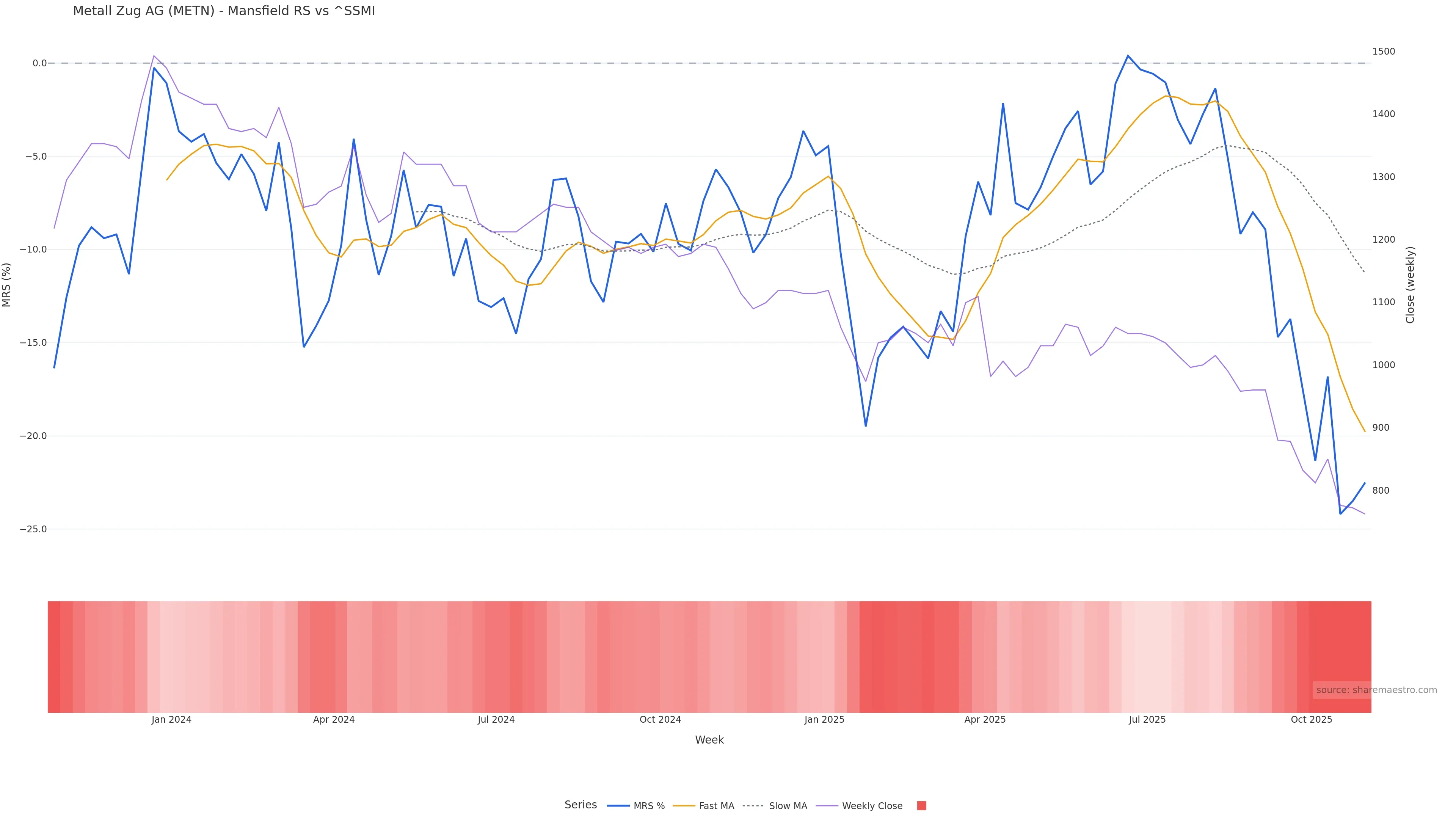 This week: relative strength is fading. In practical terms: backdrop leans corrective; rallies face a higher bar for sustainability; bearish divergence lowers the quality of upside attempts.