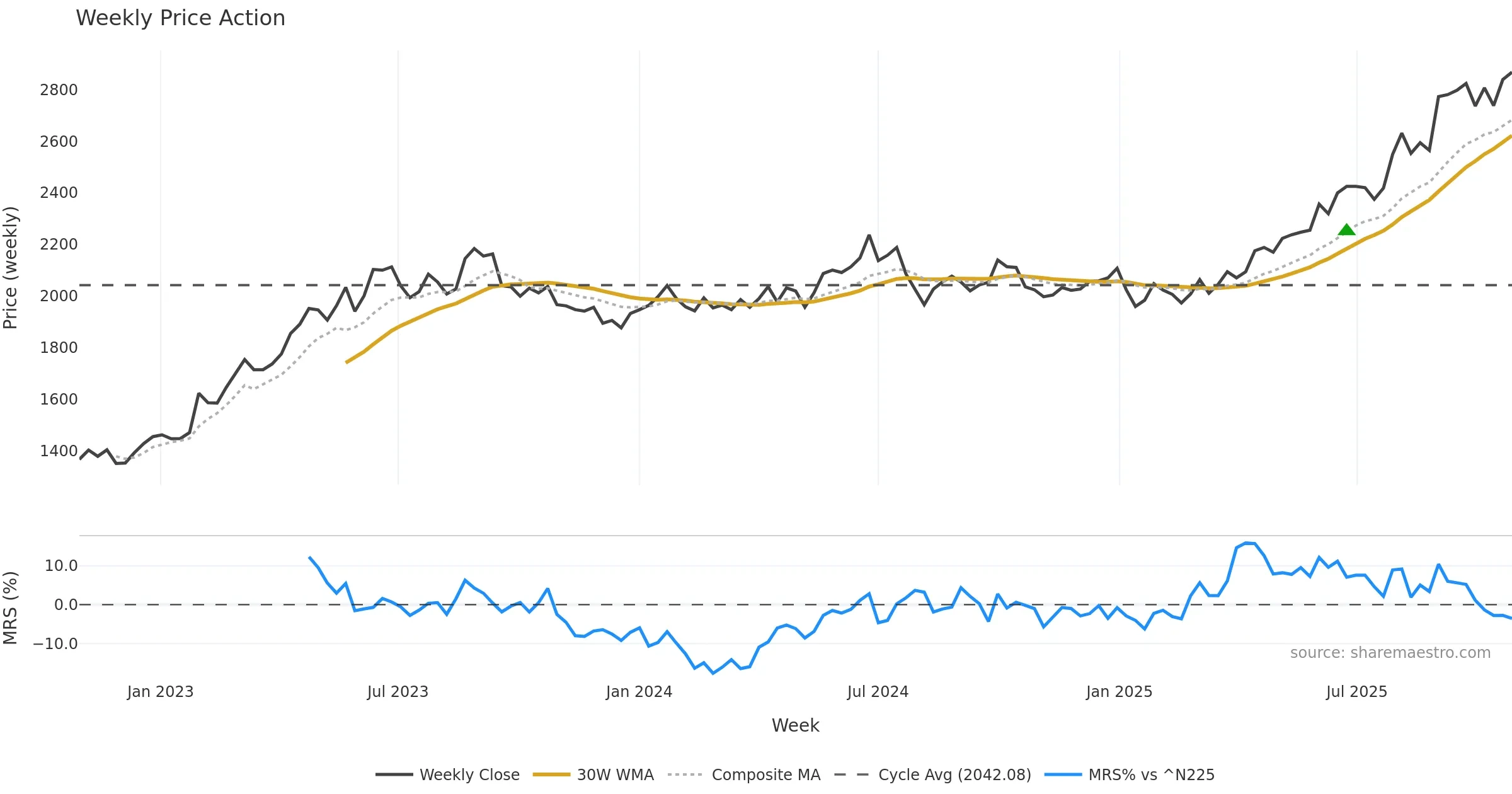 Mansfield RS vs ^N225 is negative and weakening. — Avoid unless a reversal forms.