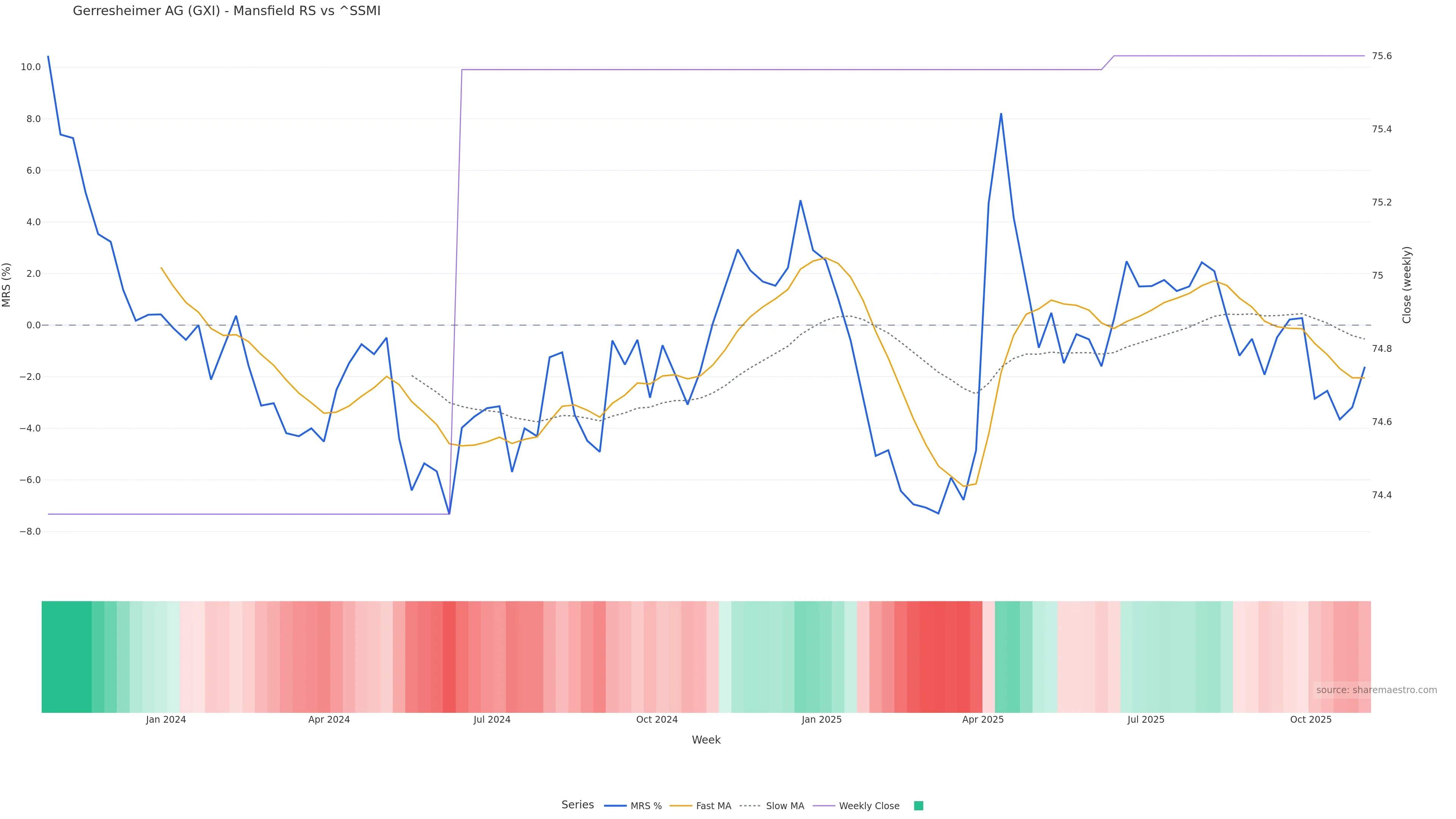 Mansfield RS vs ^SSMI is negative and weakening. Avoid unless a reversal forms. In essence this reflects Mansfield relative strength trend with a bearish tilt.