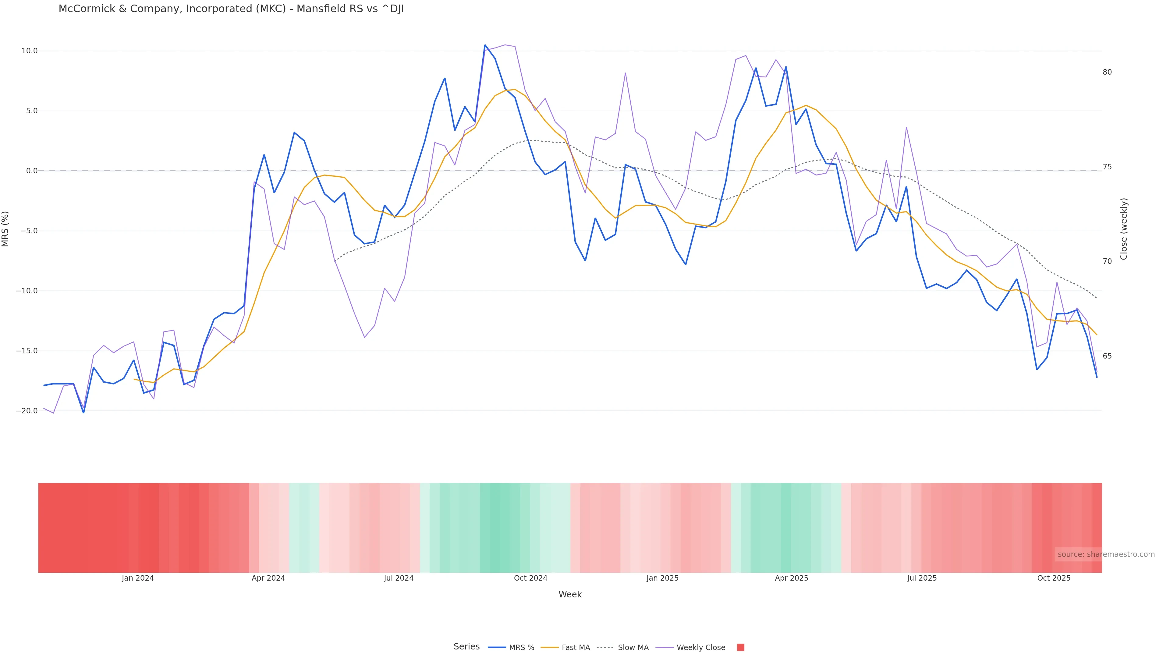 This week: relative strength is fading. In practical terms: backdrop leans corrective; rallies face a higher bar for sustainability; bearish divergence lowers the quality of upside attempts.