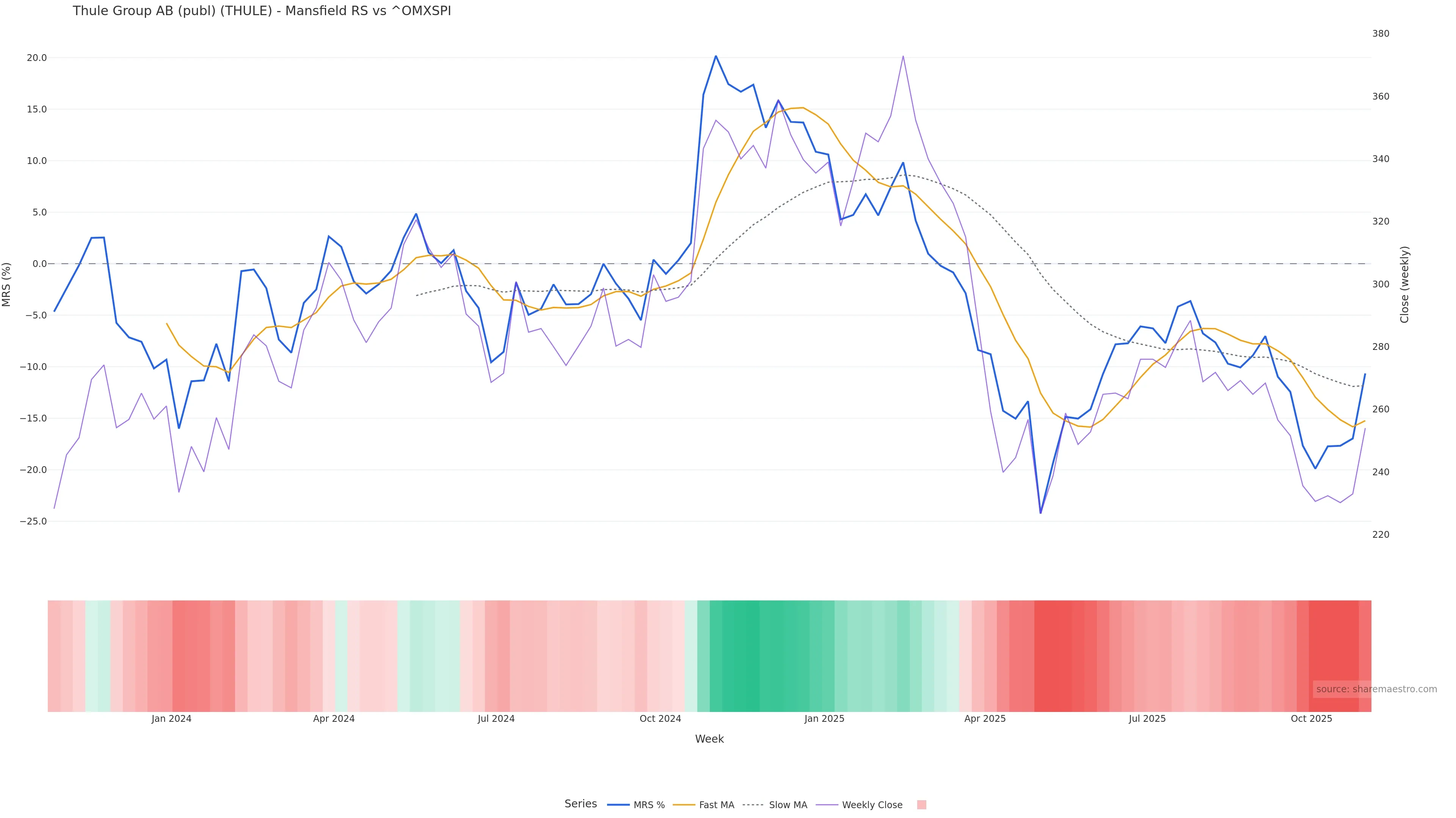 This week: relative strength is fading. In practical terms: backdrop leans corrective; rallies face a higher bar for sustainability; bearish divergence lowers the quality of upside attempts.