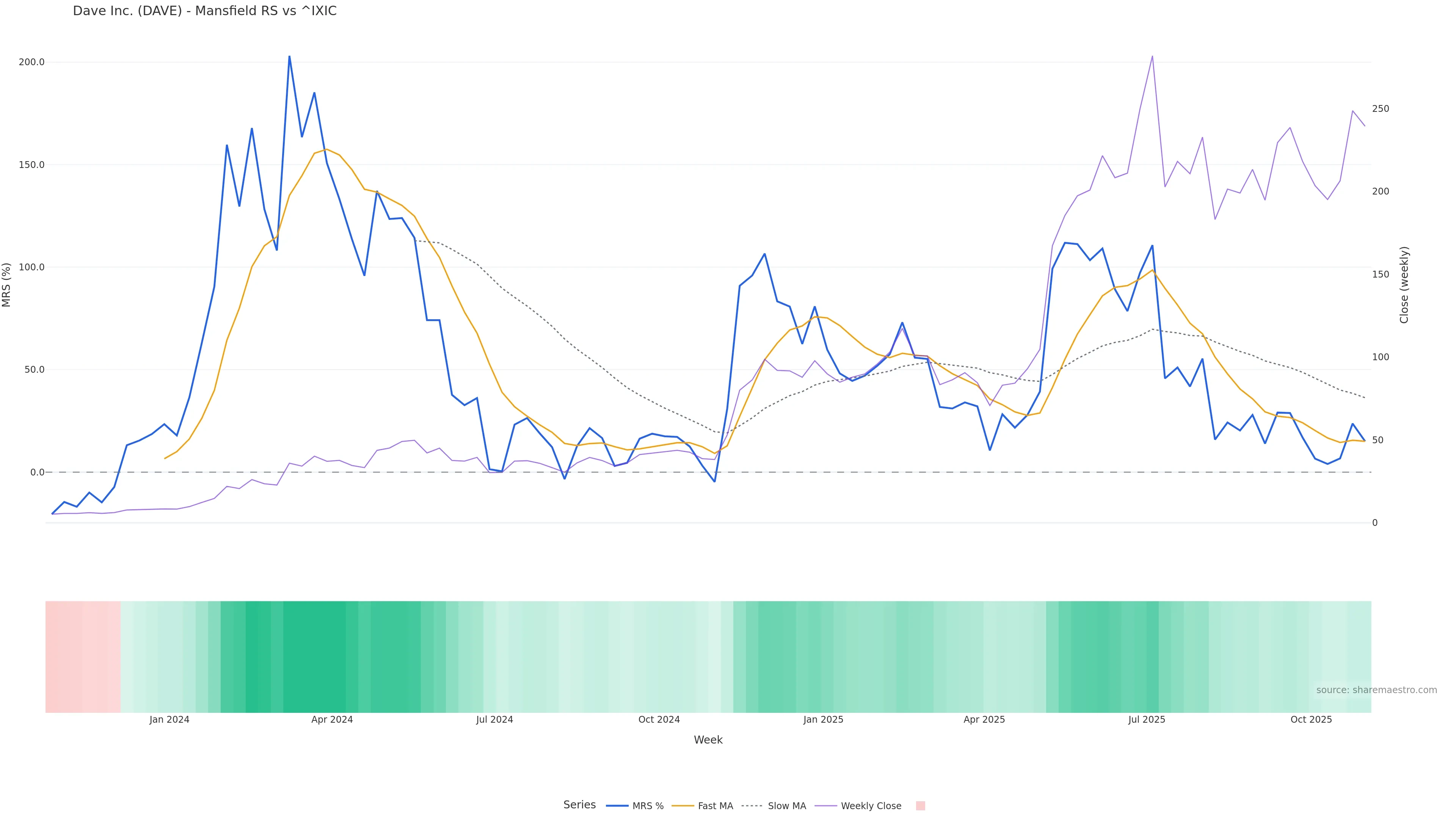 DAVE weekly Price Action chart, closing 2025-10-27