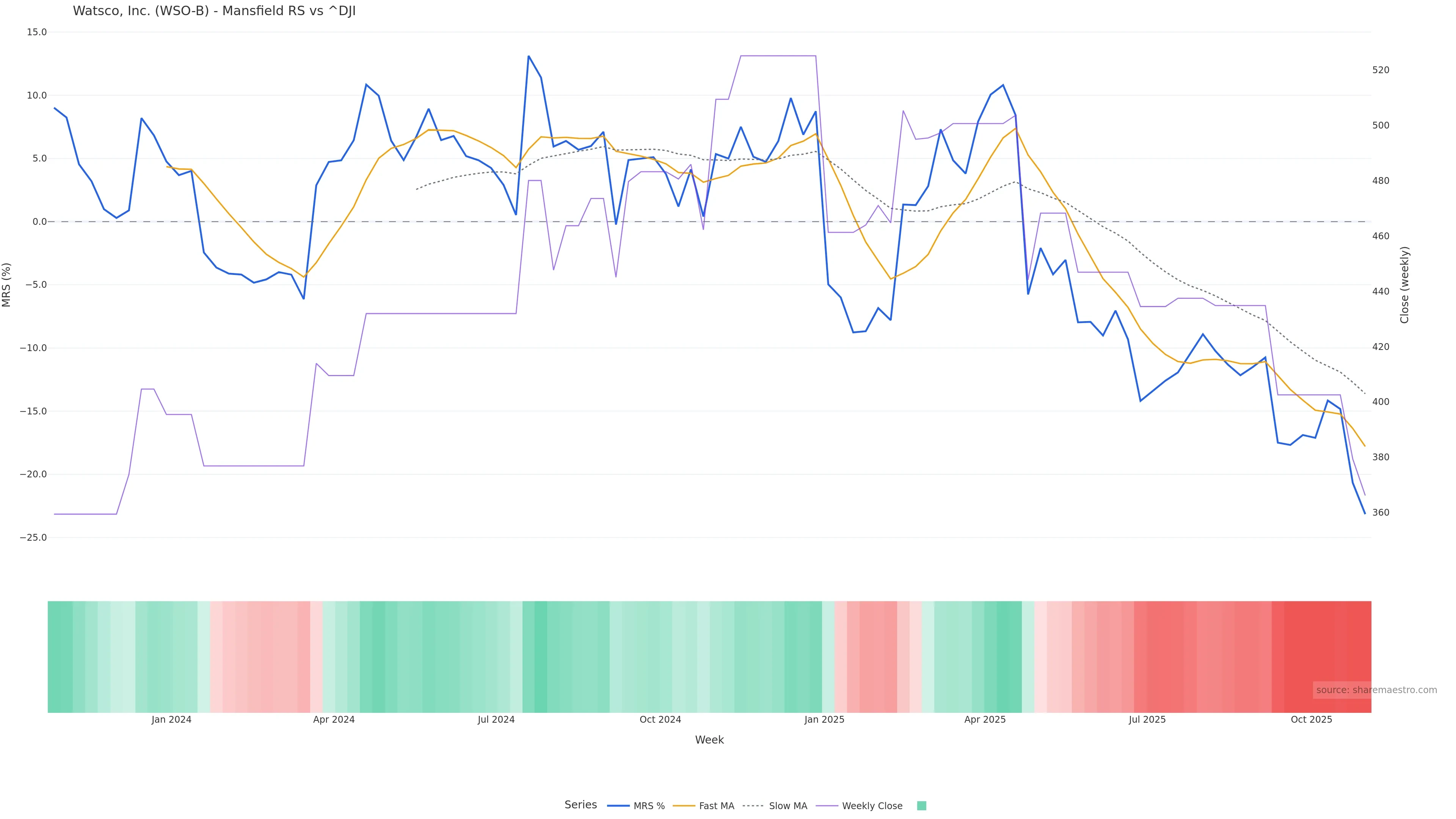 This week: relative strength is fading. In practical terms: backdrop leans corrective; rallies face a higher bar for sustainability; bearish divergence lowers the quality of upside attempts.
