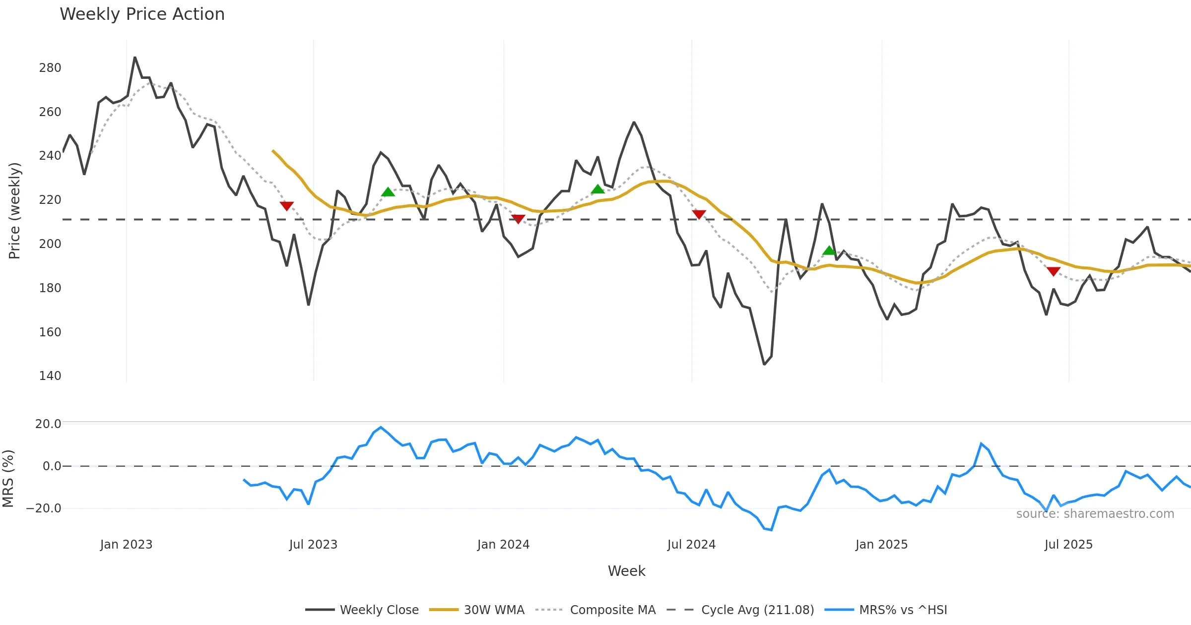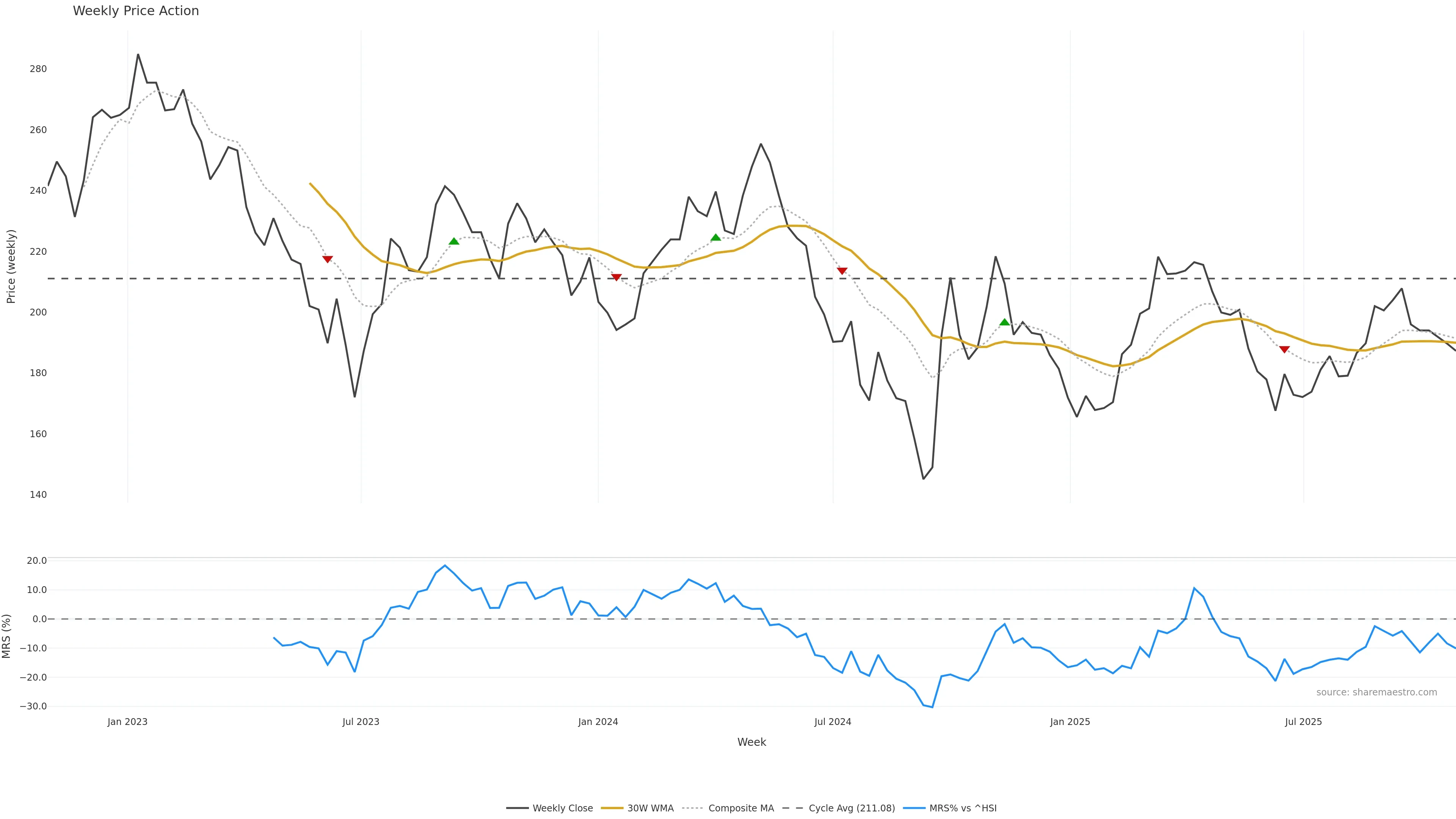 Mansfield RS vs ^HSI is negative and weakening. — Avoid unless a reversal forms.