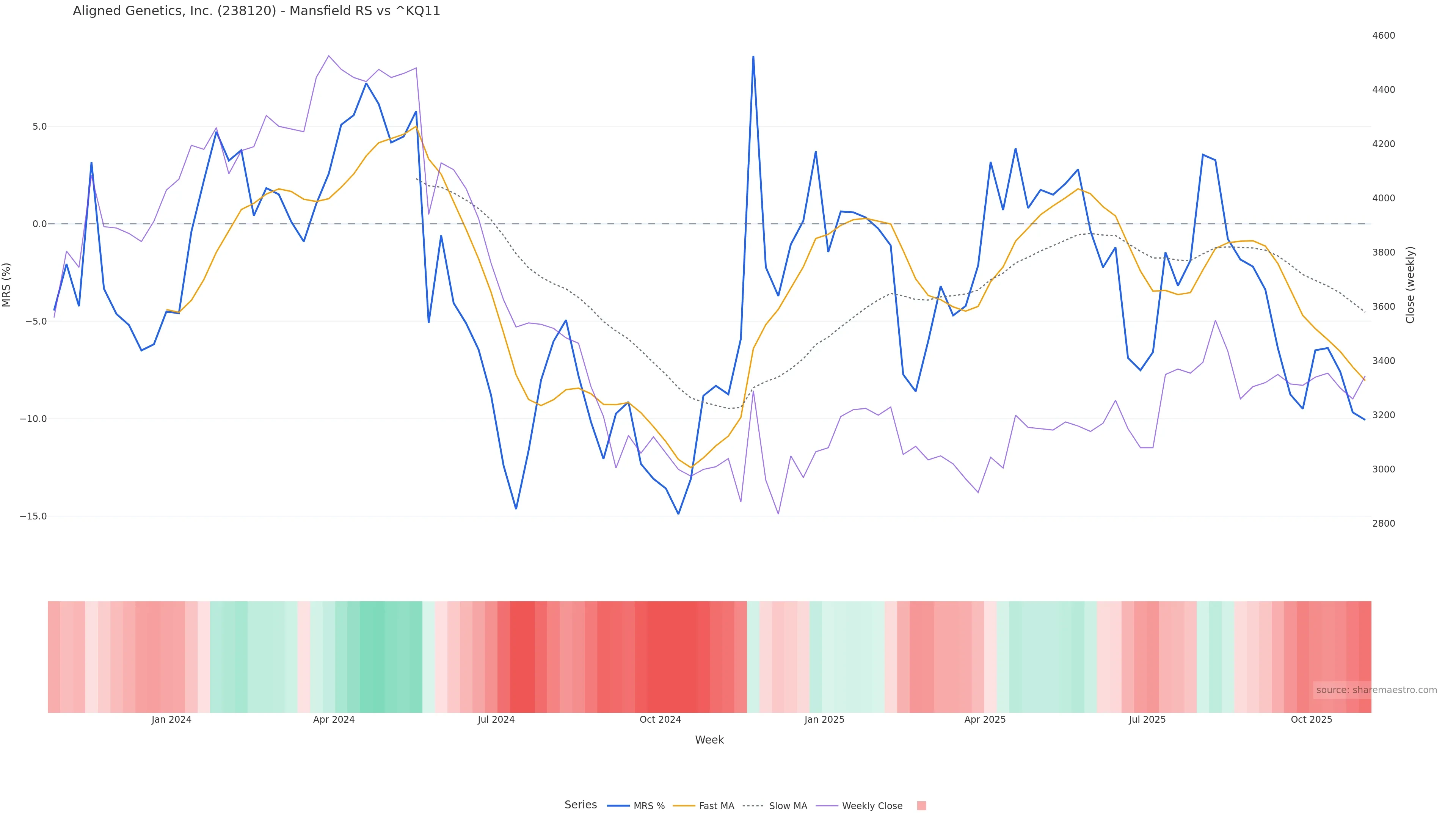 Mansfield RS vs ^KQ11 is negative and weakening.