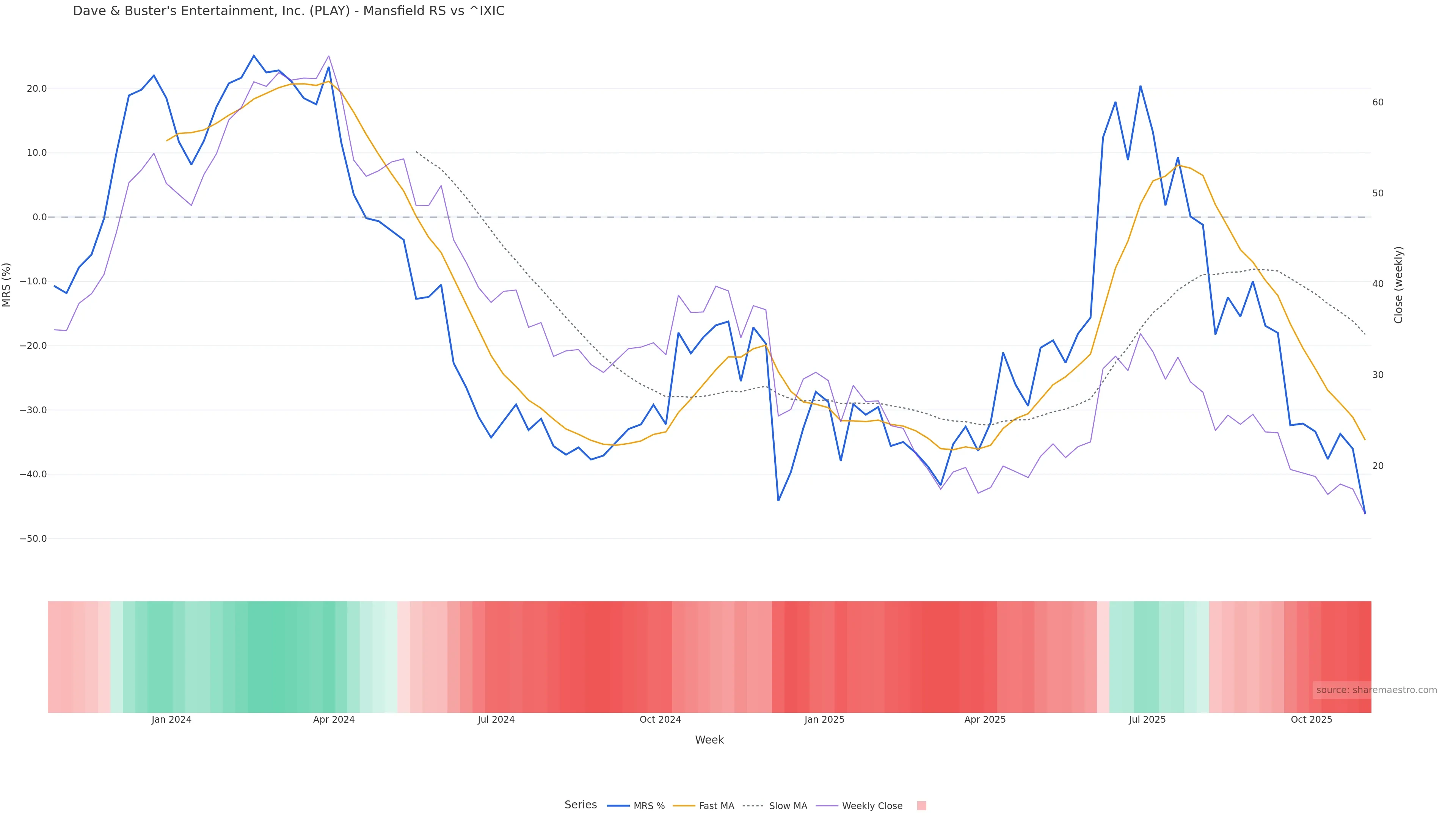 This week: relative strength is fading. In practical terms: backdrop leans corrective; rallies face a higher bar for sustainability; bearish divergence lowers the quality of upside attempts.