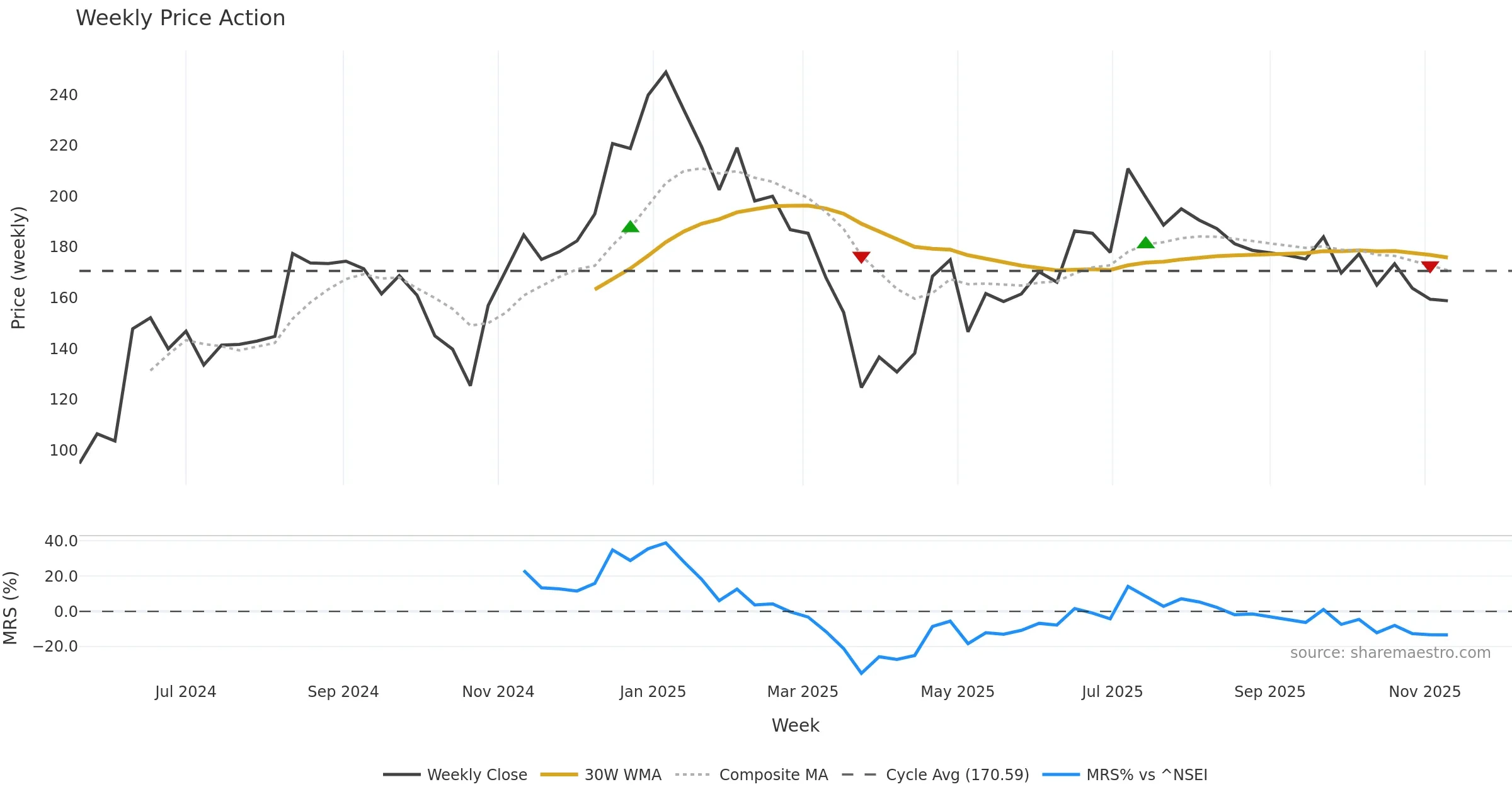Mansfield RS vs ^NSEI is negative and weakening.
