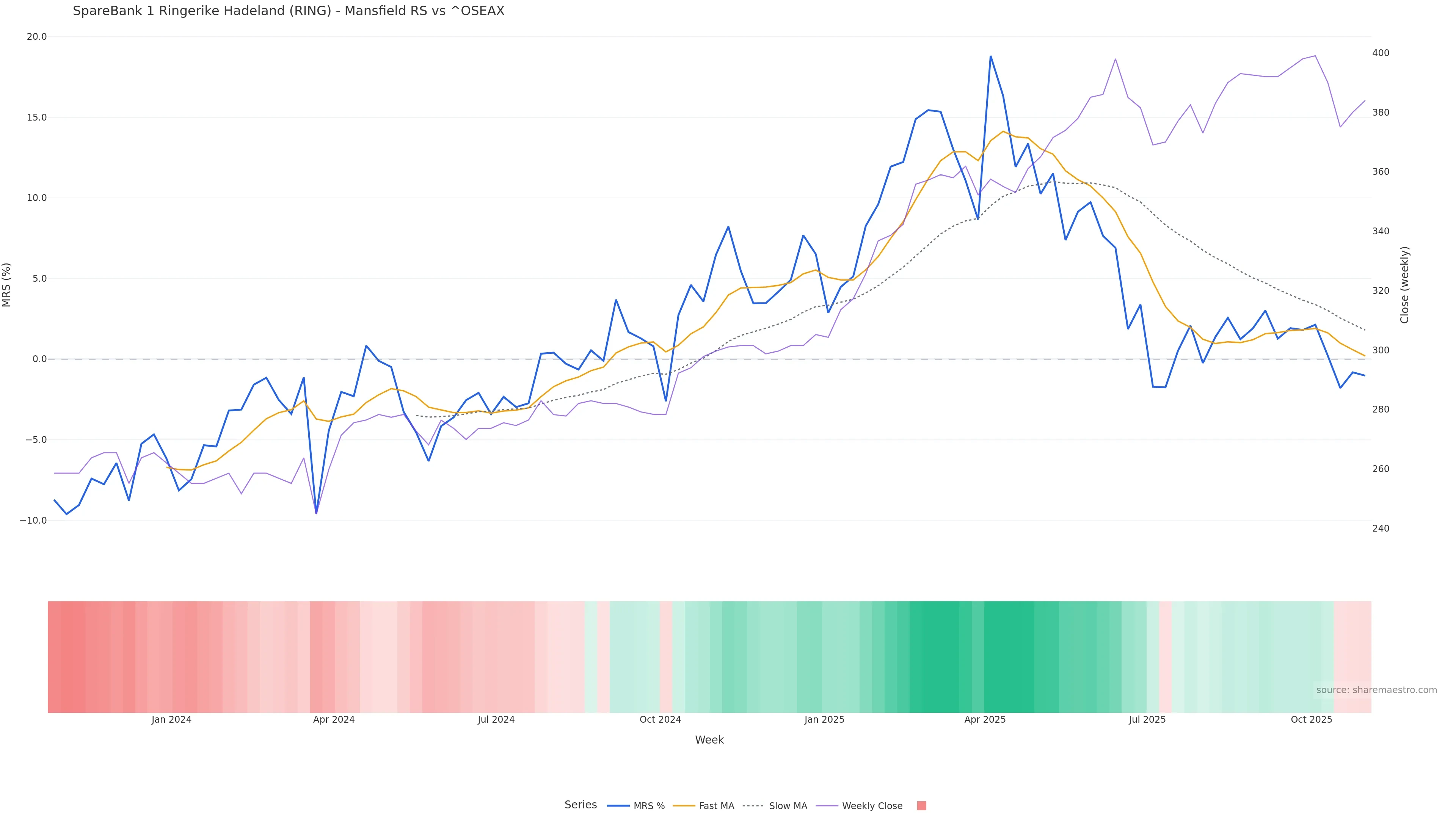 This week: relative strength is fading. In practical terms: backdrop leans corrective; rallies face a higher bar for sustainability; bearish divergence lowers the quality of upside attempts.