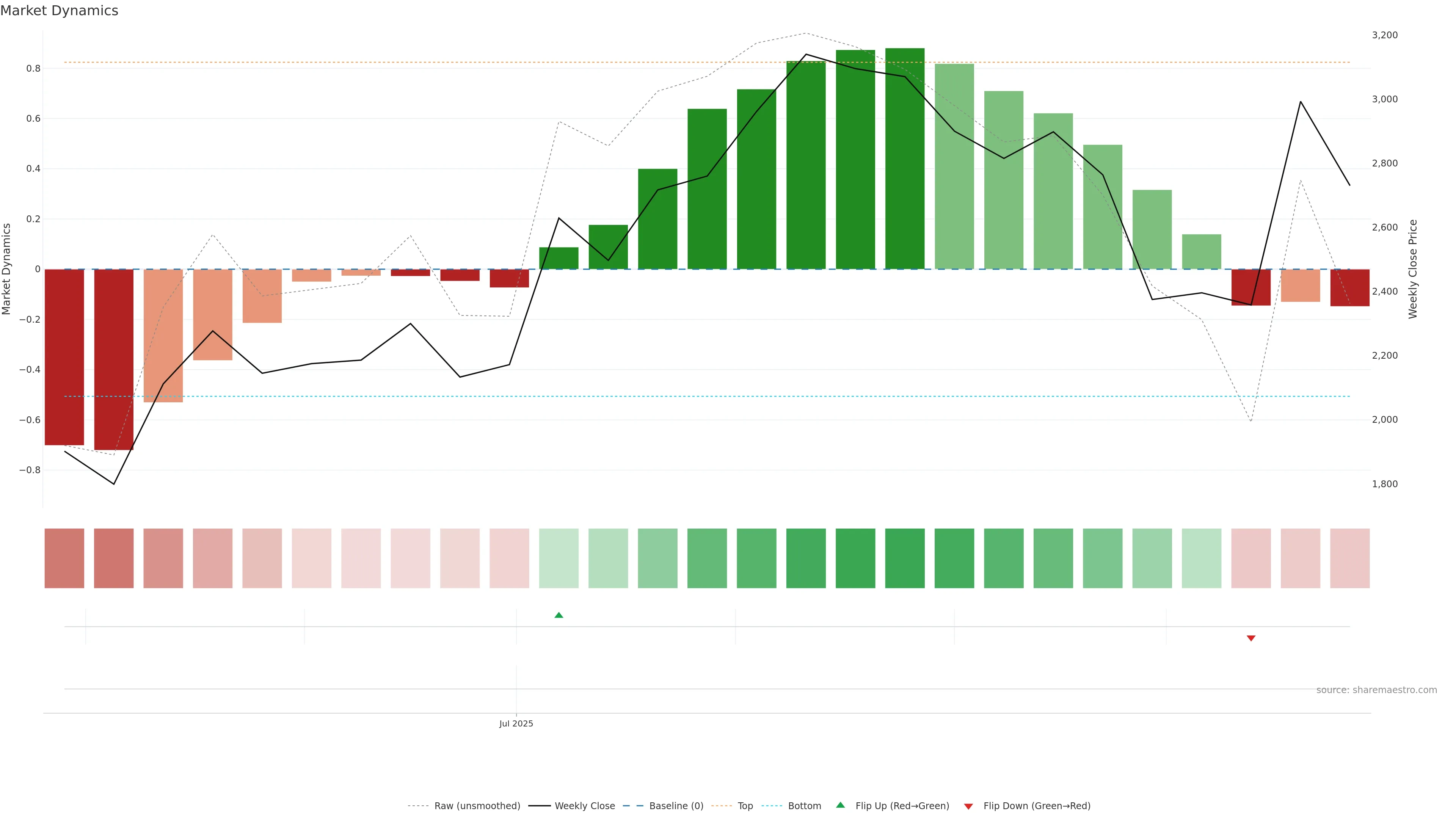 Recent ribbon flip to red. — First bars of a new state can build trend.