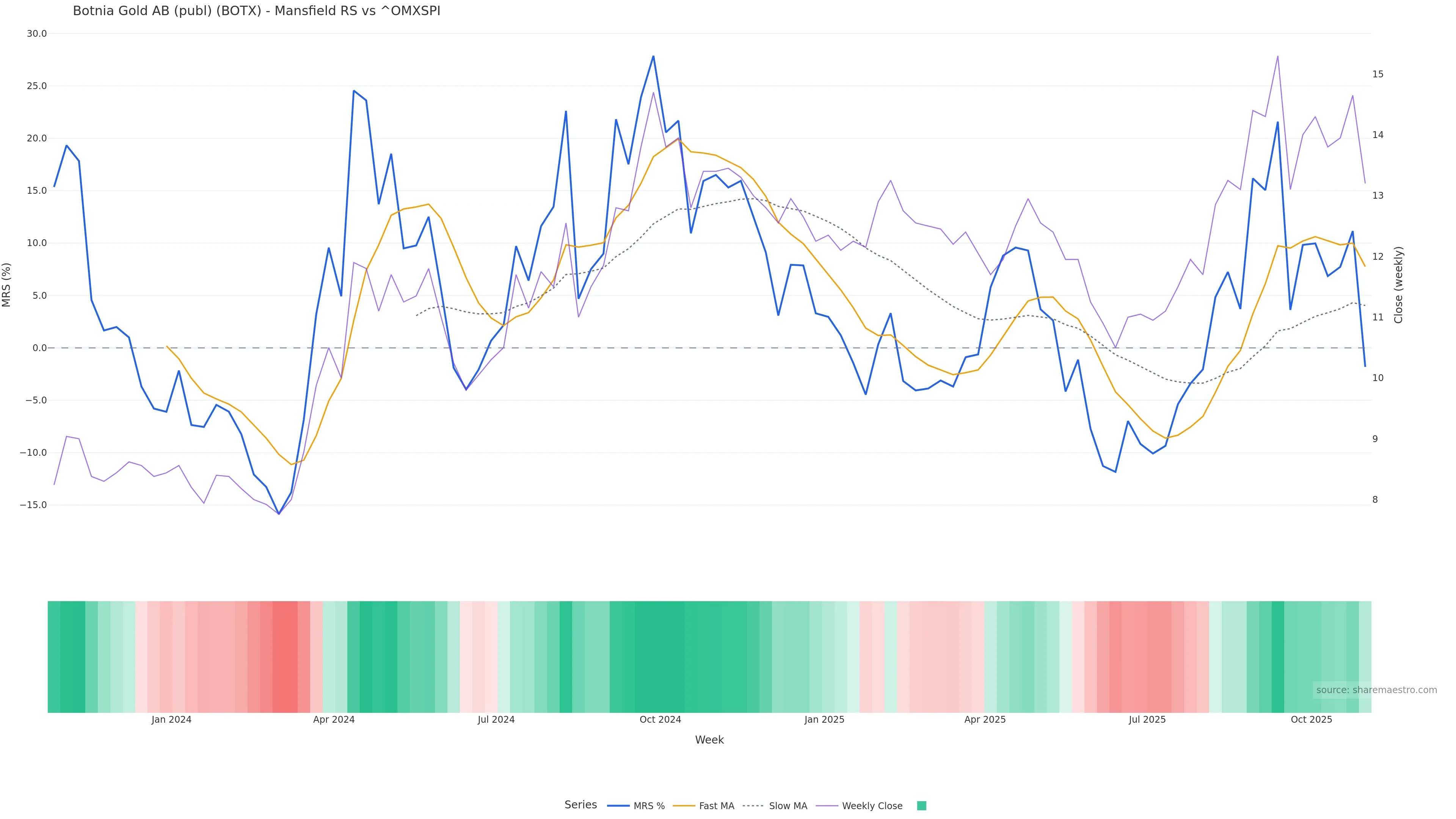 This week: relative strength is fading. In practical terms: backdrop leans corrective; rallies face a higher bar for sustainability; bearish divergence lowers the quality of upside attempts.